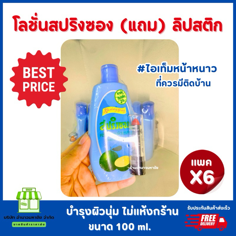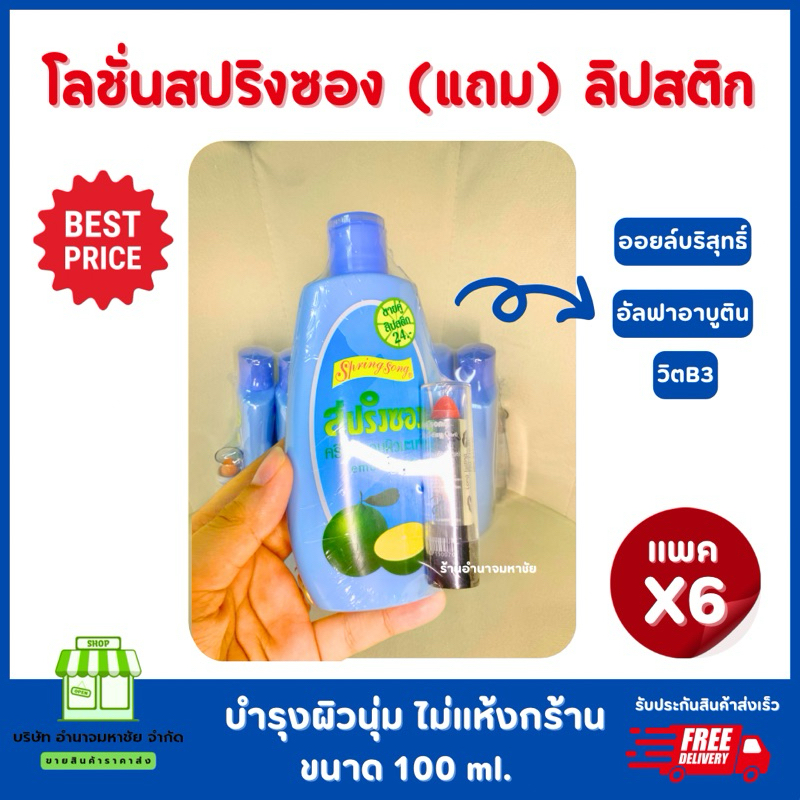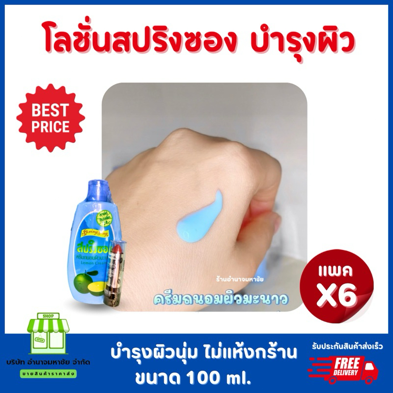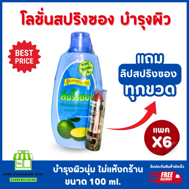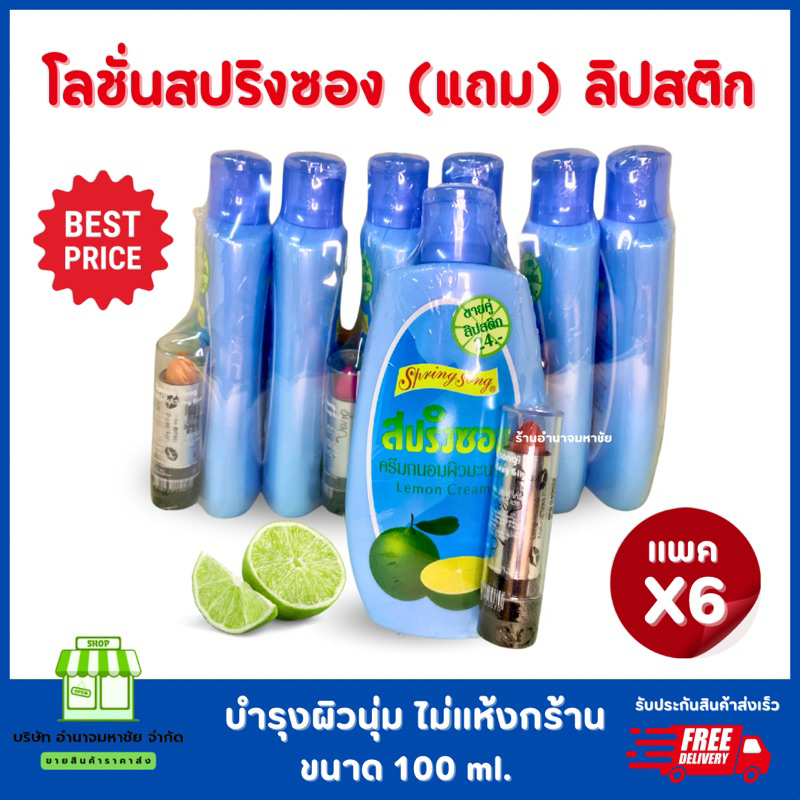 (ยกแพคx6)โลชั่นสปริงซองแถมลิป โลชั่นบำรุงผิวมะนาว ขนาด100มล.