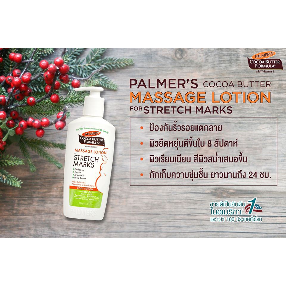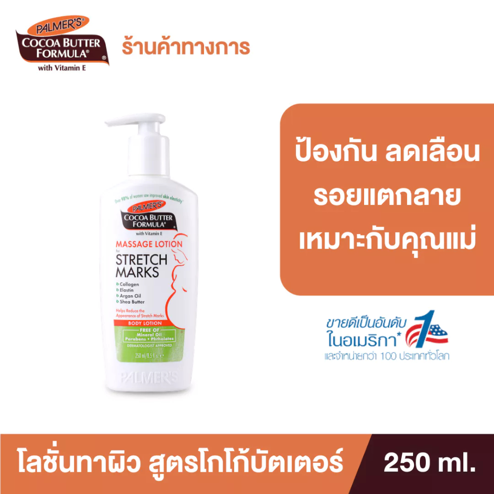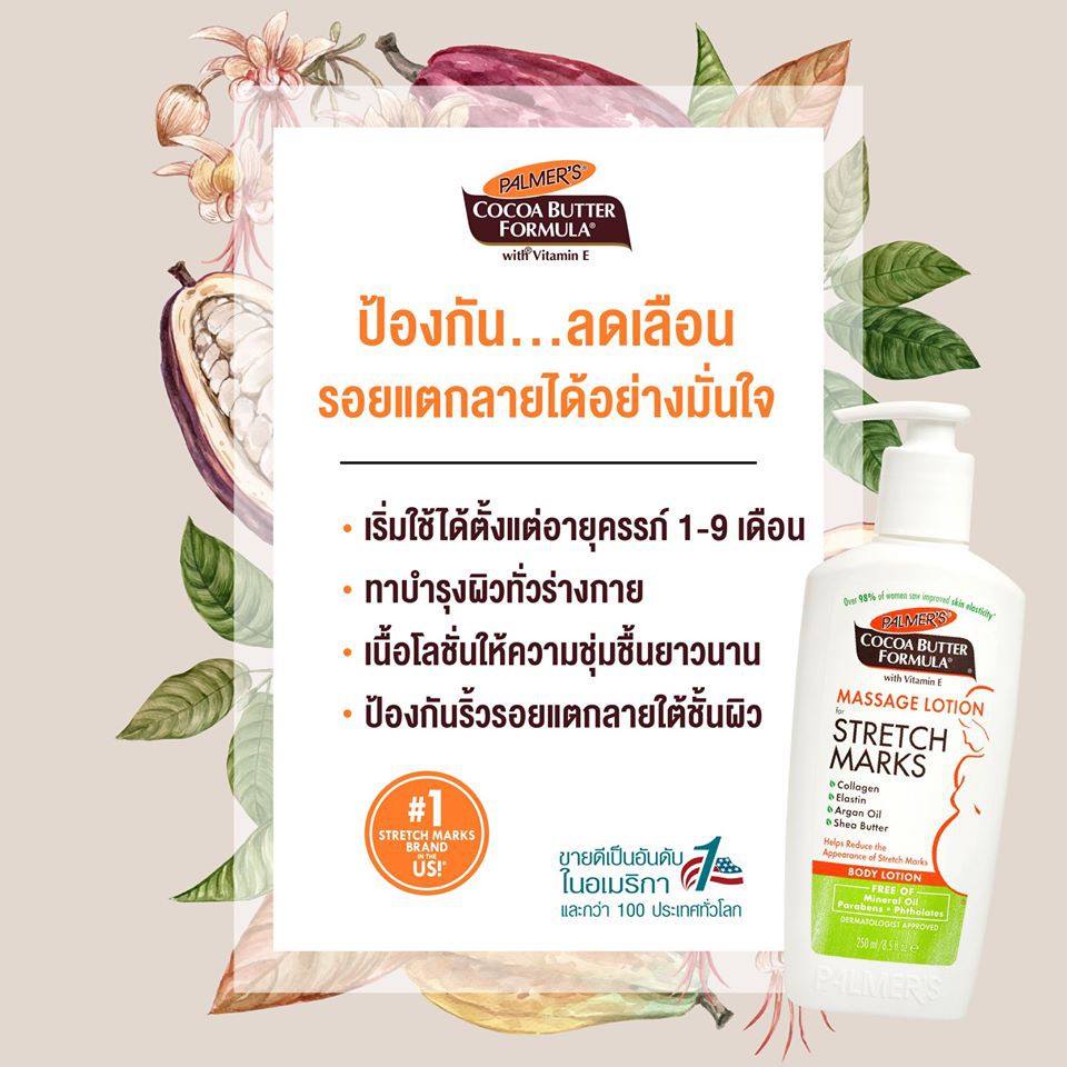 Palmer’s Massage Lotion for Stretch Marks 250ml. โลชั่นบำรุงผิว สูตรโกโก้บัตเตอร์ ป้องกันลดรอยแตกลาย ผิวนุ่ม ปาล์มเมอร์