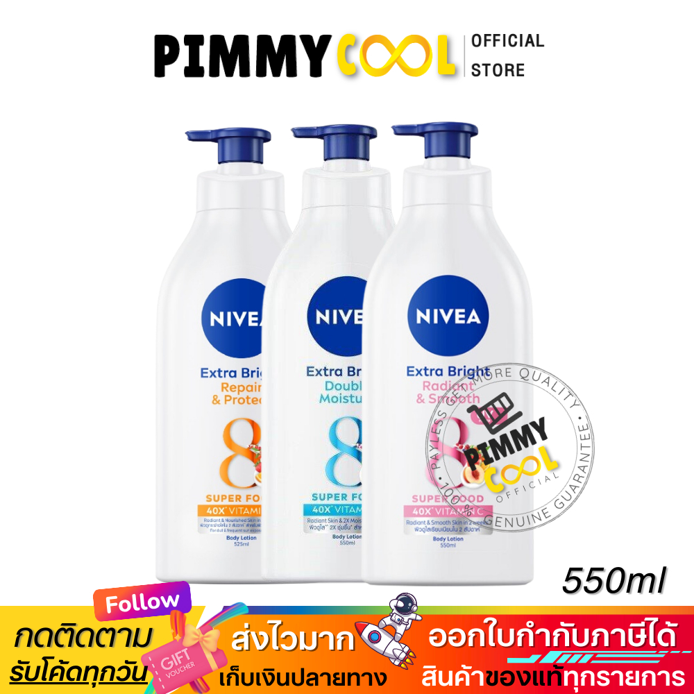 Nivea นีเวีย บอดี้ โลชั่น เอ็กซ์ตร้า ไบรท์ เรเดียนท์ แอนด์ สมูท 550 มล.แพ็กคู่