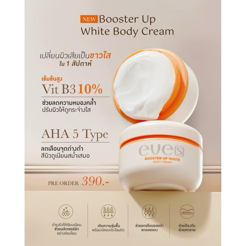 🩵🧡🌿| ของแท้+พร้อมส่ง | EVE‘S อีฟส์ บูสเตอร์อีฟส์ ออยเจล ครีมทาผิว เติมความชุ่มชื้นผิว ปรับผิวขาวกระจ่างใส ลดผิวแตกลาย