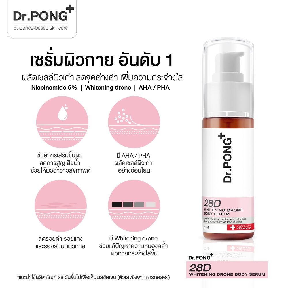 Dr.PONG 28D whitening drone body serum เซรั่มผิวขาว สำหรับผิวกาย ลดจุดด่างดำ Niacinamide Vit C Arbutin