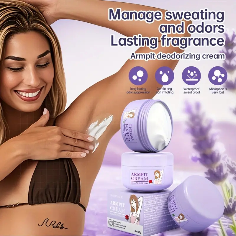 ครีมระงับกลิ่นกายกําจัดกลิ่นรักแร้และป้องกันเหงื่อให้กลิ่นหอมติดทนนานสําหรับการดูแลผิว