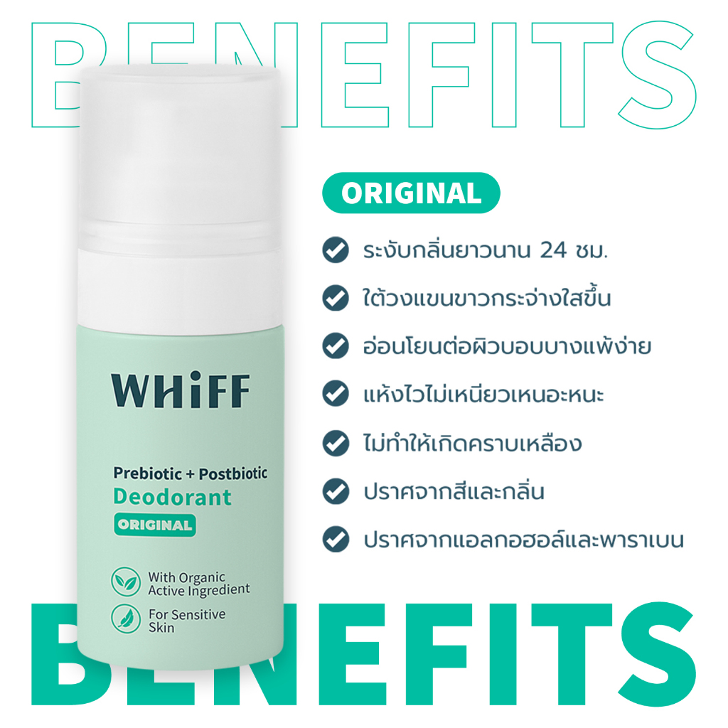 WHIFF Deodorant เซรั่ม สเปรย์ระงับกลิ่นกาย ระงับกลิ่นนาน 24 ชม. แห้งไว ปราศจากสีและกลิ่น สูตร Original 50ml