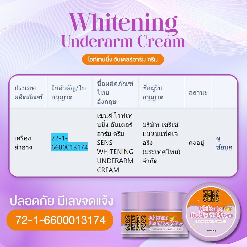 ครีมรักแร้ขาว Underarm Care Oriental Princess