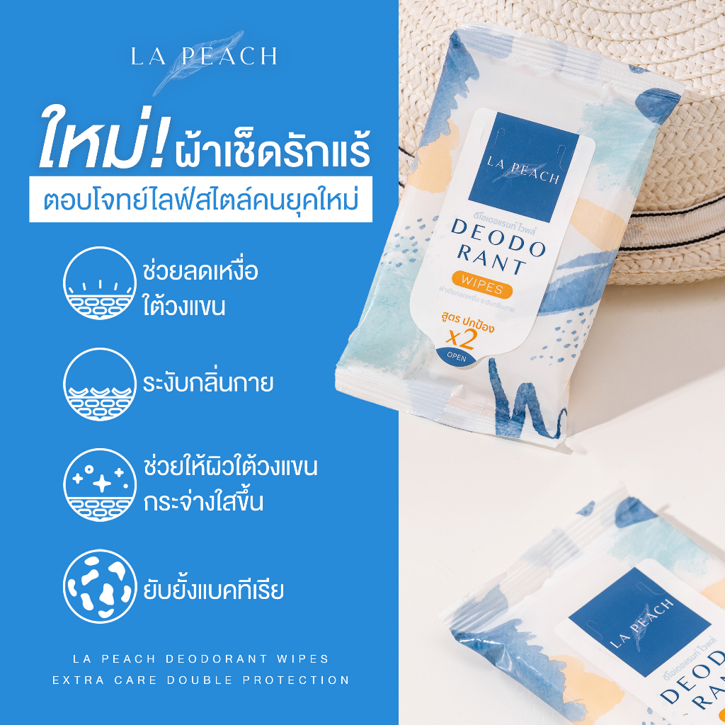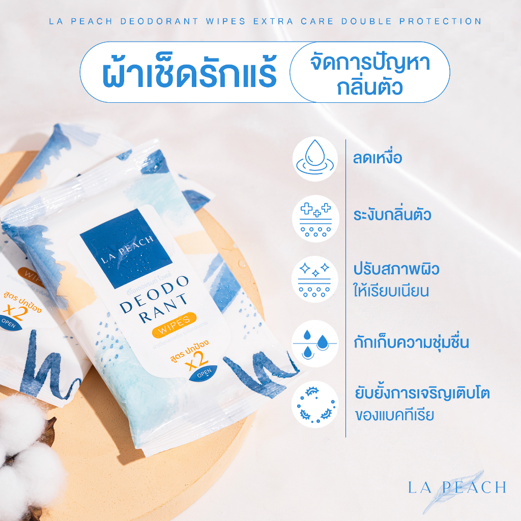 ลาพีช ทิชชู่เปียก ผ้าเปียก เช็ดรักแร้ ลดเหงื่อ และระงับกลิ่นกาย กลิ่นเท้า เท้าเหม็น LA PEACH DEODORANT WIPES EXTRA CARE