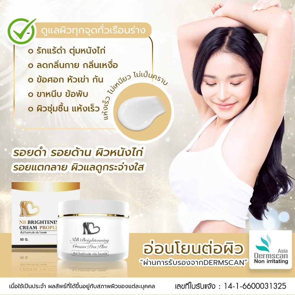 ส่งฟรี! ⚡ NB Brightening Cream ProPlus ครีมแก้รักแร้ดำพี่ฟ้า ลดกลิ่นตัว มอยเจอไรเซอร์