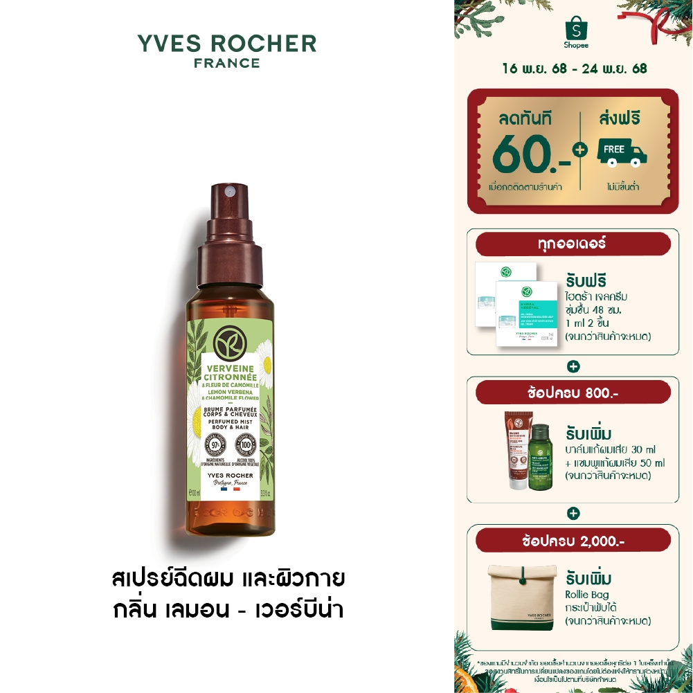 อีฟ โรเช Yves Rocher Lemon Verbena & Chamomile Flower Perfumed Mist Body & Hair 100ml.สเปรย์ฉีดผม กลิ่นเลมอน-เวอร์บีน่า