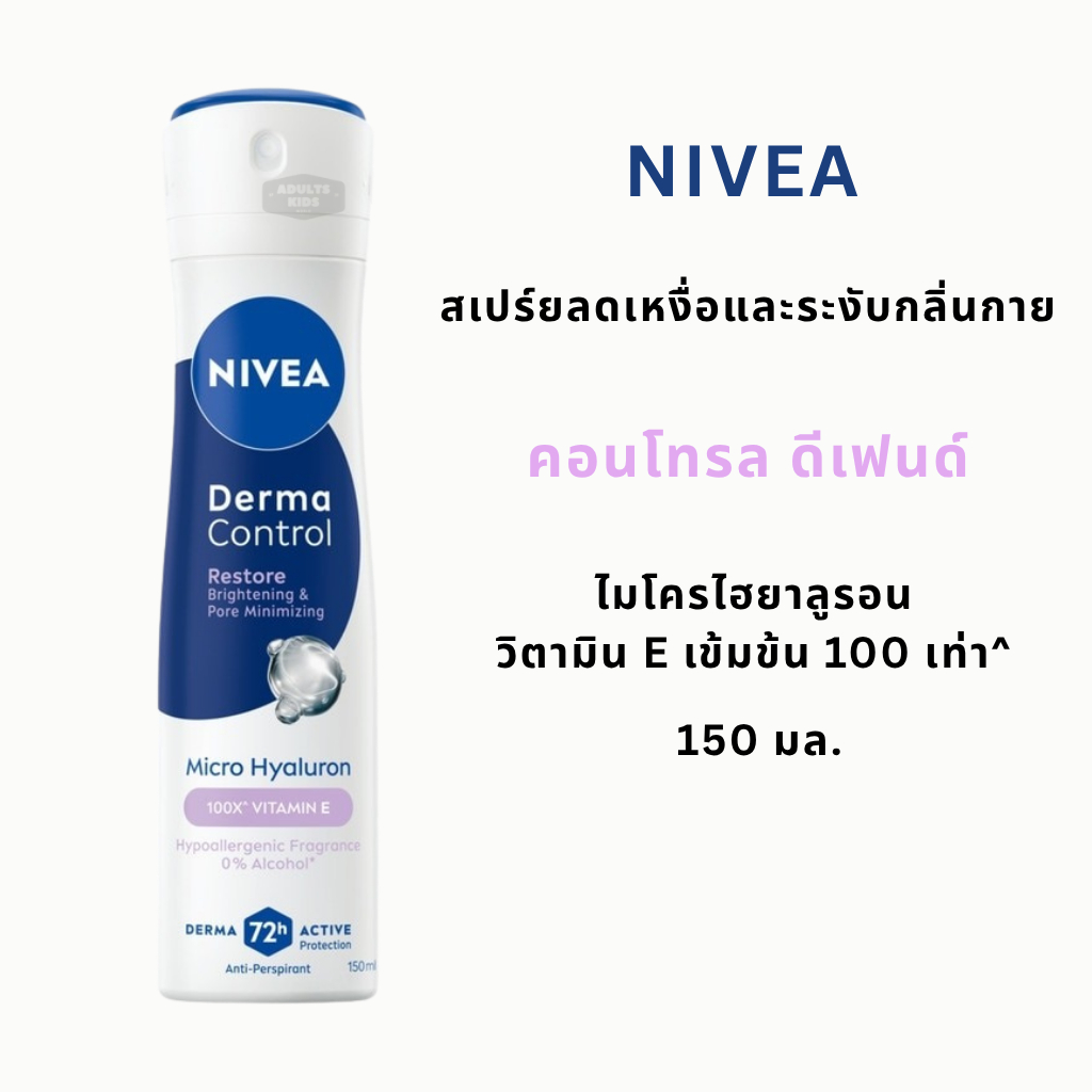 ลดเพิ่ม 30% 🔥 Nivea นีเวีย Derma Control Restore Spray 150ml สเปร์ยลดเหงื่อและระงับกลิ่นกาย มิตามิน E