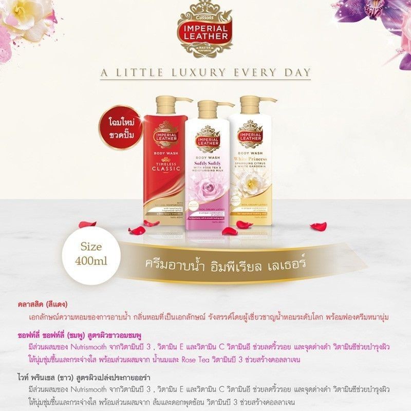 (Refill 1แถม1) Imperial Leather Body Wash 400ml x 2pcs อิมพีเรียล เลเธอร์ บอดี้ วอช 400มล x 2ชิ้น