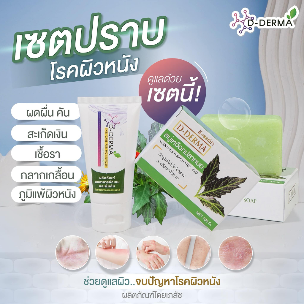 (ของแท้) D-Derma สบู่ว่านและครีมว่าน ผื่นคัน ผดผื่น แพ้ ผิวหนังอักเสบ กลากเกลื้อน เชื้อรา เซ็บเดิร์ม