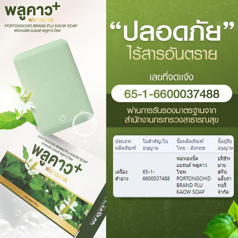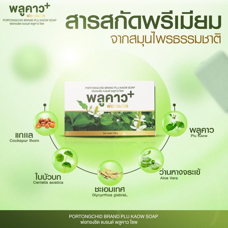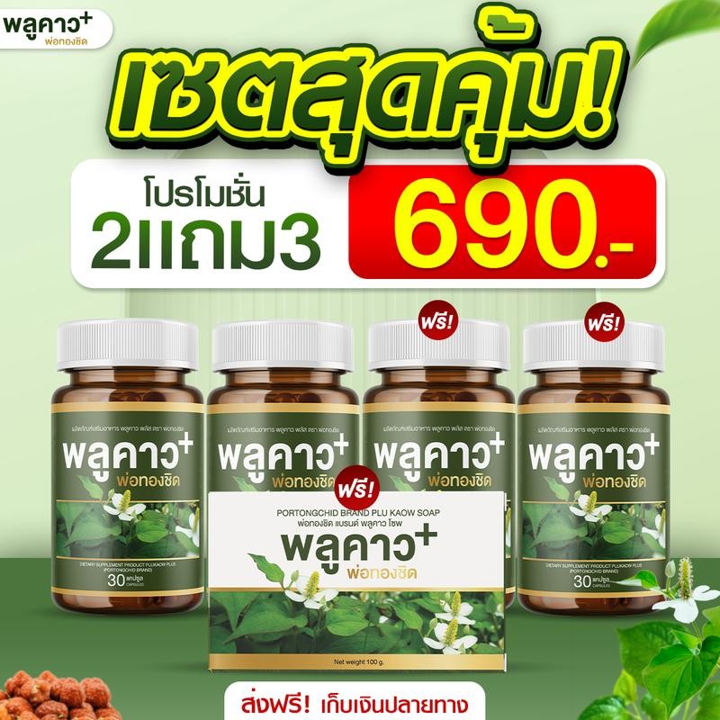 พลูคาว ตราพ่อทองชิด 2 แถม 3 ราคา 690.- (พลูคาว 4 กระปุก สบู่พลูคาว 1 ก้อน)