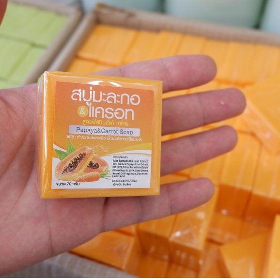🎉Big Sale🎉สบู่มะละกอแครอทแท้💯 สูตรดั้งเดิมจากฟิลิปินส์ ขาวใสลดฝ้ากระจุดด่างดำ ถูกมาก ขายเท‼️ขนาด70กรัม คุ้มสุดๆ