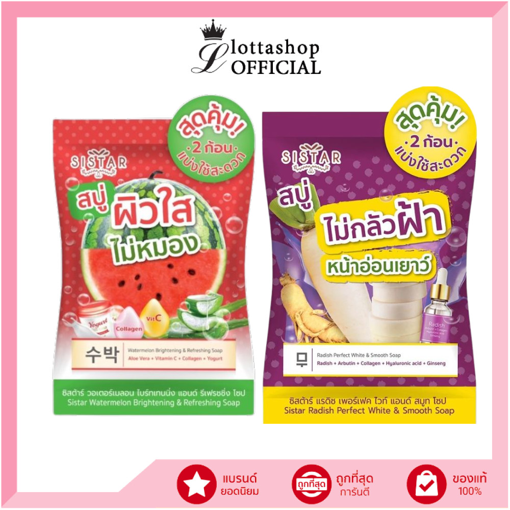 🔥1ก้อน🔥Sistar Soap สบู่แตงโม ซิสต้าร์ & สบู่ไชเท้า ซิสต้าร์ 60 กรัม (1 ซอง บรรจุ 2 ก้อน )