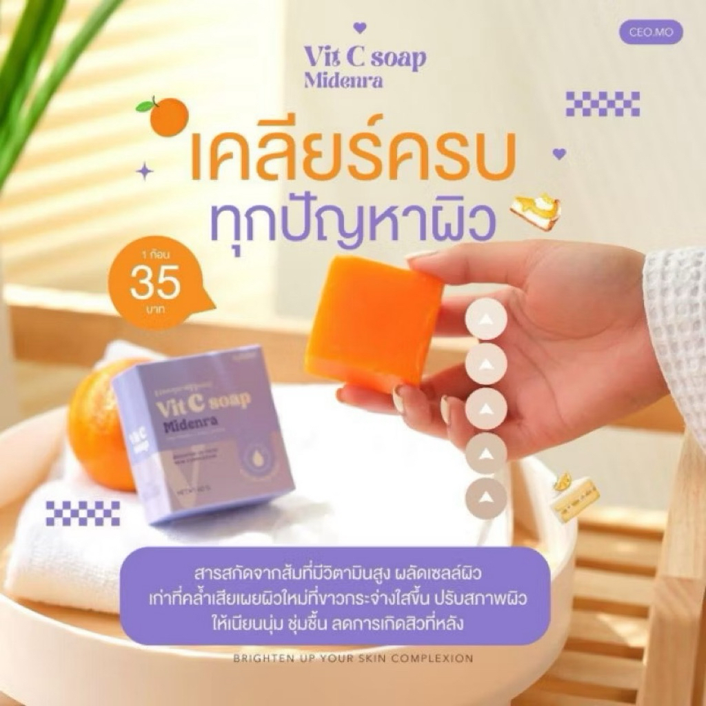 🔥พร้อมส่ง🔥สบู่ส้มวิตซี Vit C Soap MD ลดสิว ริ้วรอยจุดด่างดำ ผิวแพ้ง่ายใช้ได้ หน้าใสอย่างเห็นได้ชัด พร้อมส่งจ้า