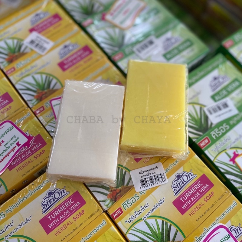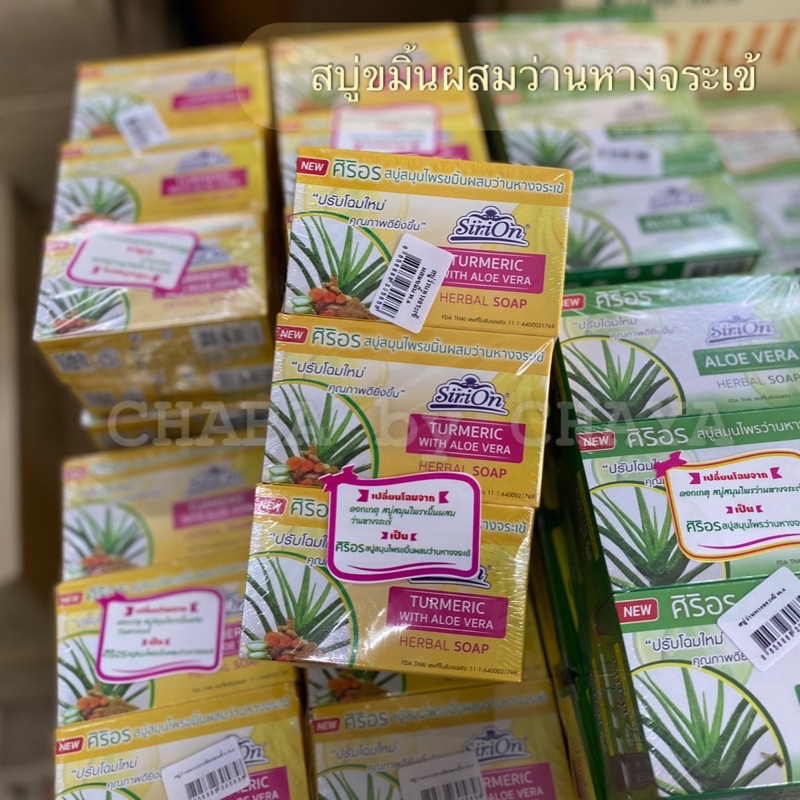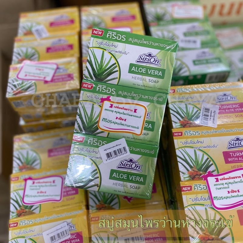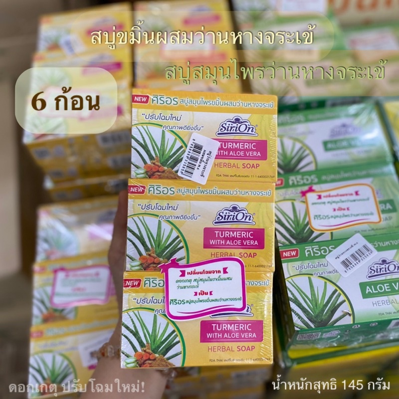 [แพ็ค 6 ก้อน] สบู่ว่านหางจระเข้ Aloe Vera สบู่ขมิ้นผสมว่านหางจระเข้ Turmeric with Aloe Vera Herbal Soap ศิริอร 145 g