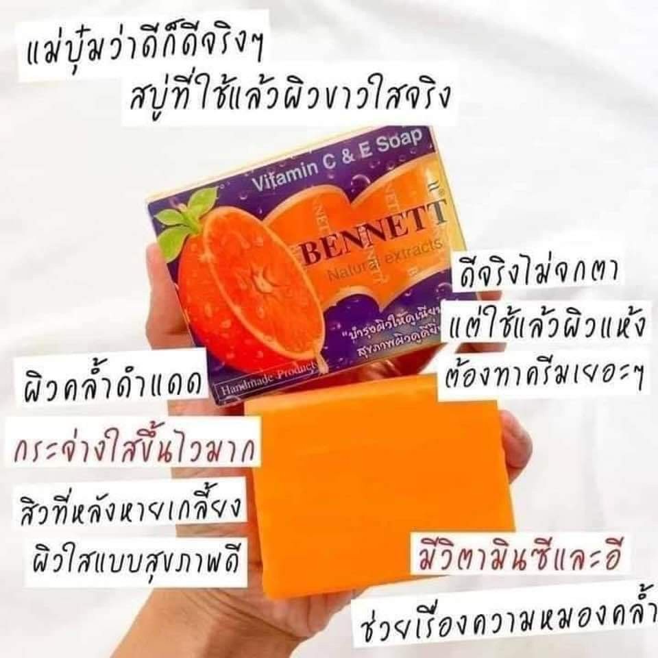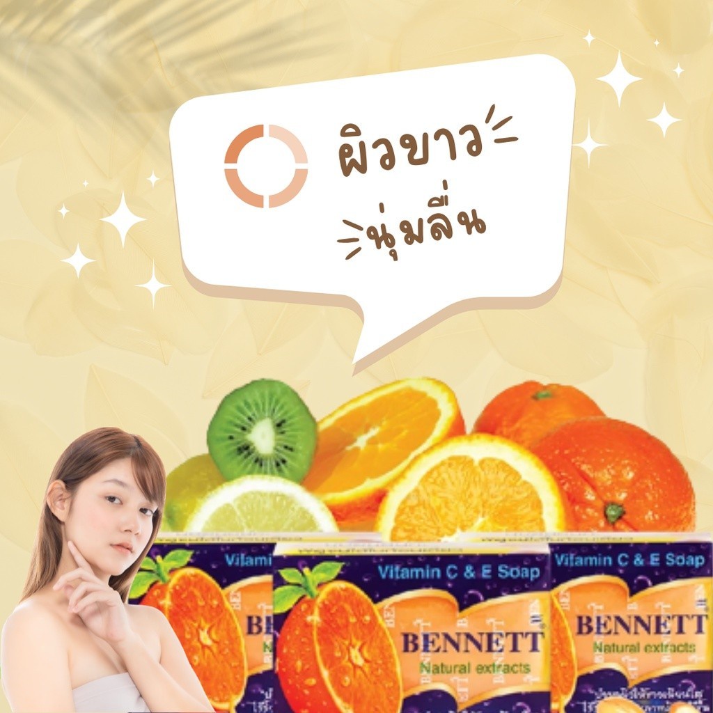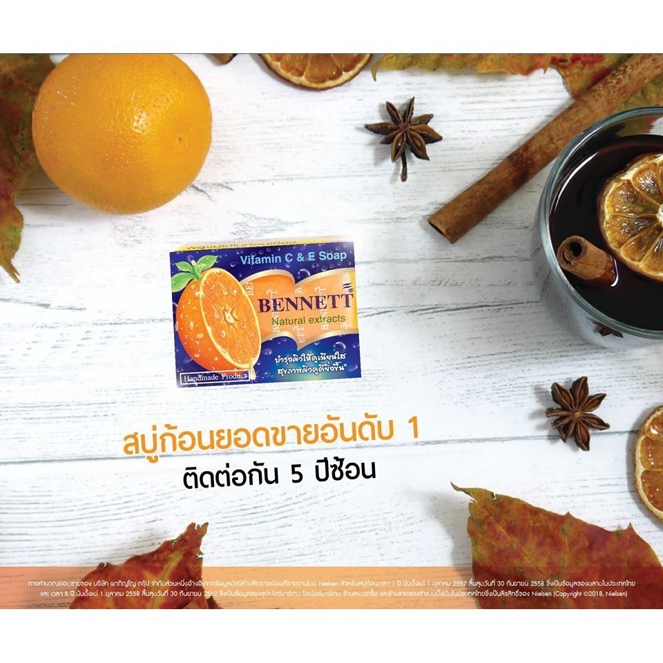 **สีส้ม** BENNETT Vitamin C&E Soap สบู่เบนเนท วิตามินอี สูตรเพิ่มวิตามินซี 130 g.