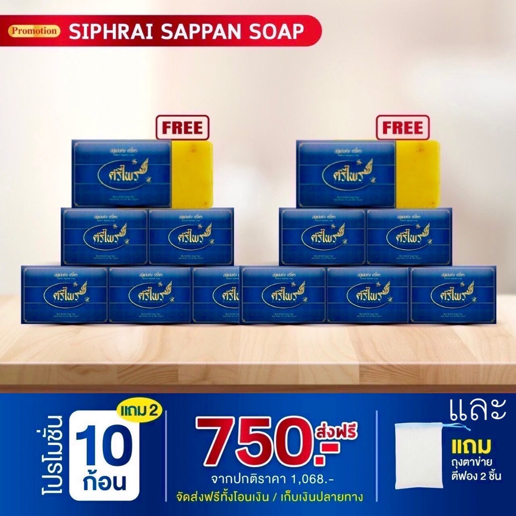 10 แถม 2 สบู่ศรีไพร สูตรแก่นฝาง ดูแลสุขภาพผิว เหงื่อเยอะ คันผิวหนัง ผดผื่น กลิ่นกายแรง ขนาด100G.