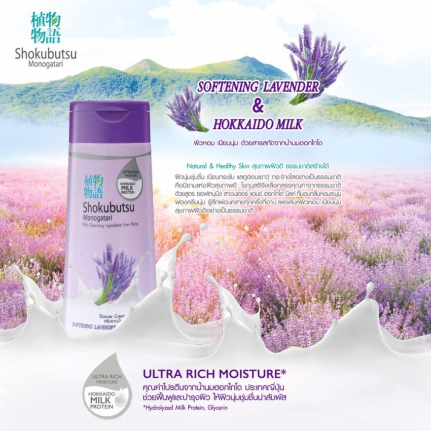 [แพ็คคู่] ขวด +รีฟีล SHOKUBUTSU ครีมอาบน้ำ โชกุบุสซึ สูตร SOFTENING LAVENDER & HOKKAIDO MILK