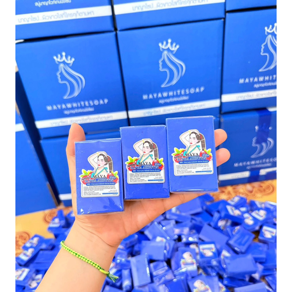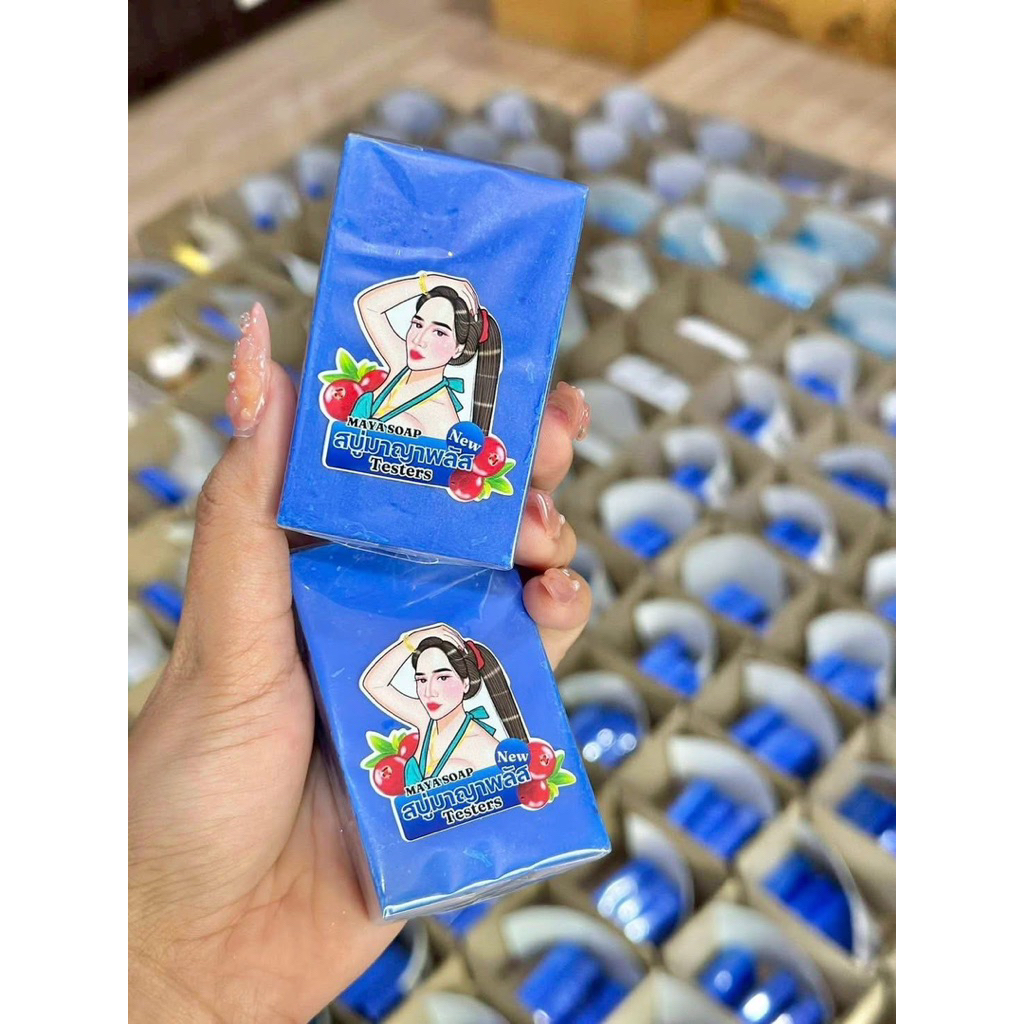 2ก้อน สบู่มาญา สูตรใหม่ สีน้ำเงิน ขัดขี้ไคลหลุดง่าย
