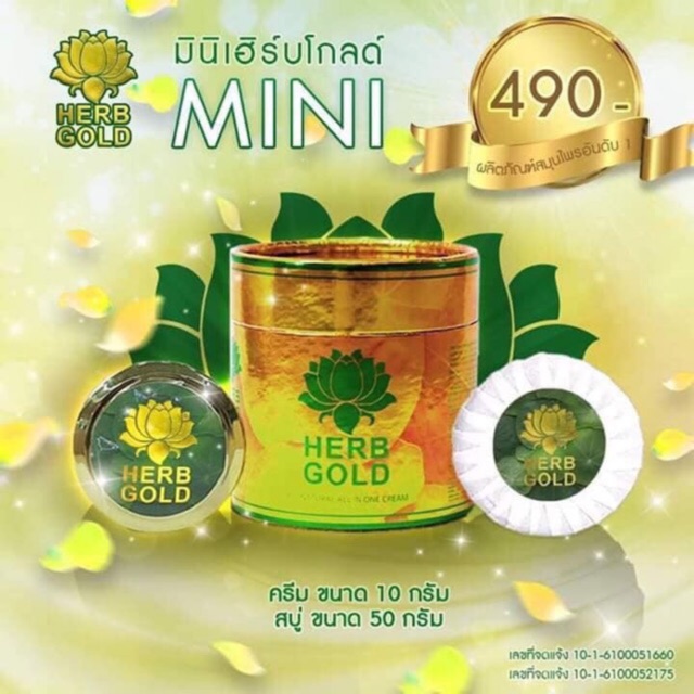 Herb Gold ครีมสมุนไพรเฮิร์บโกลด์ สบู่สมุนไพร + ครีมบำรุง (ครีม 10 กรัม +สบู่ 50 กรัม)