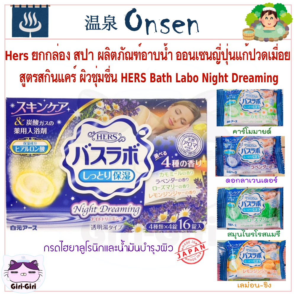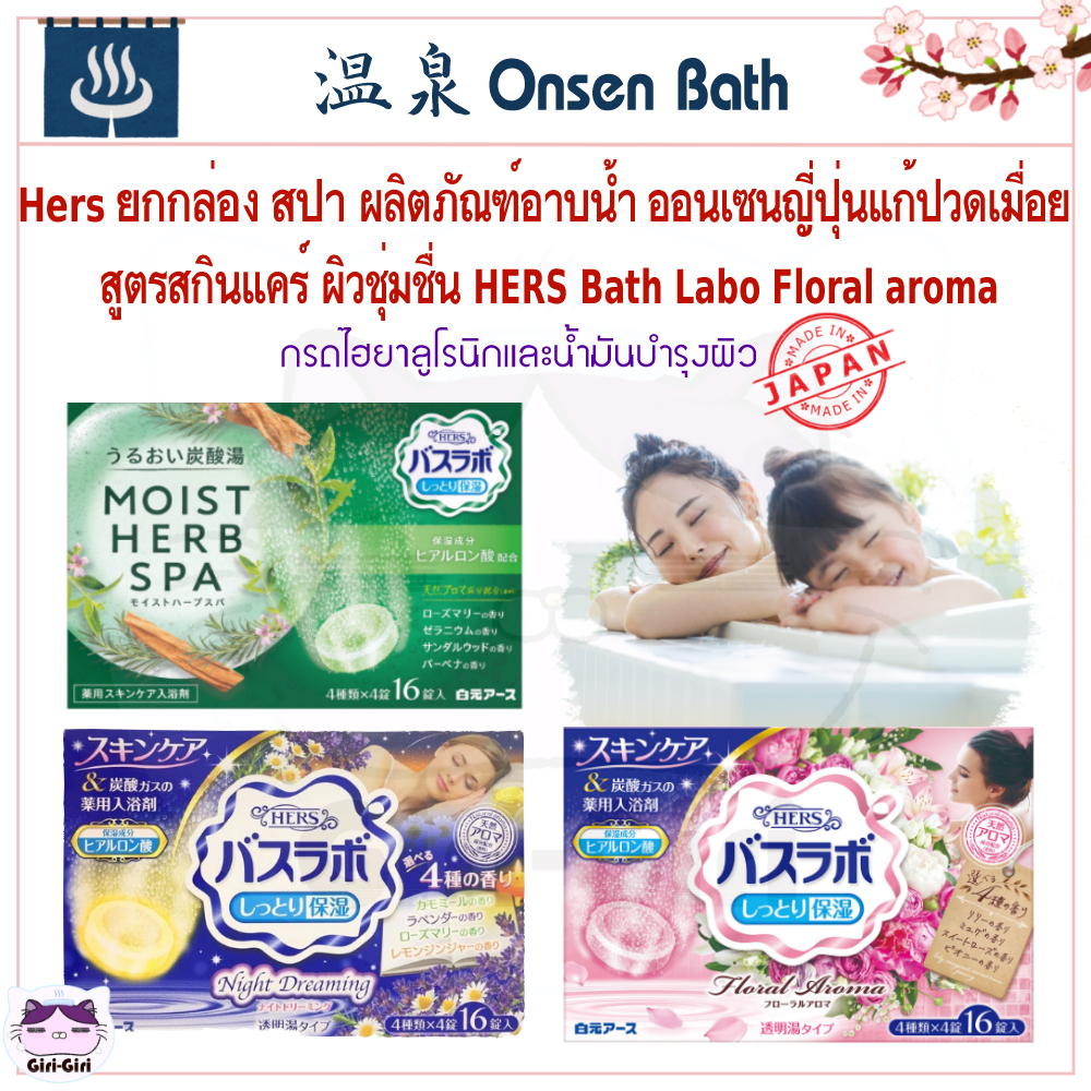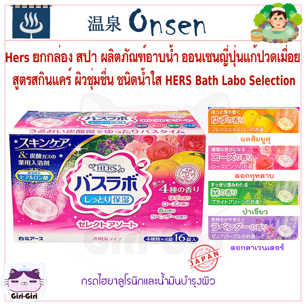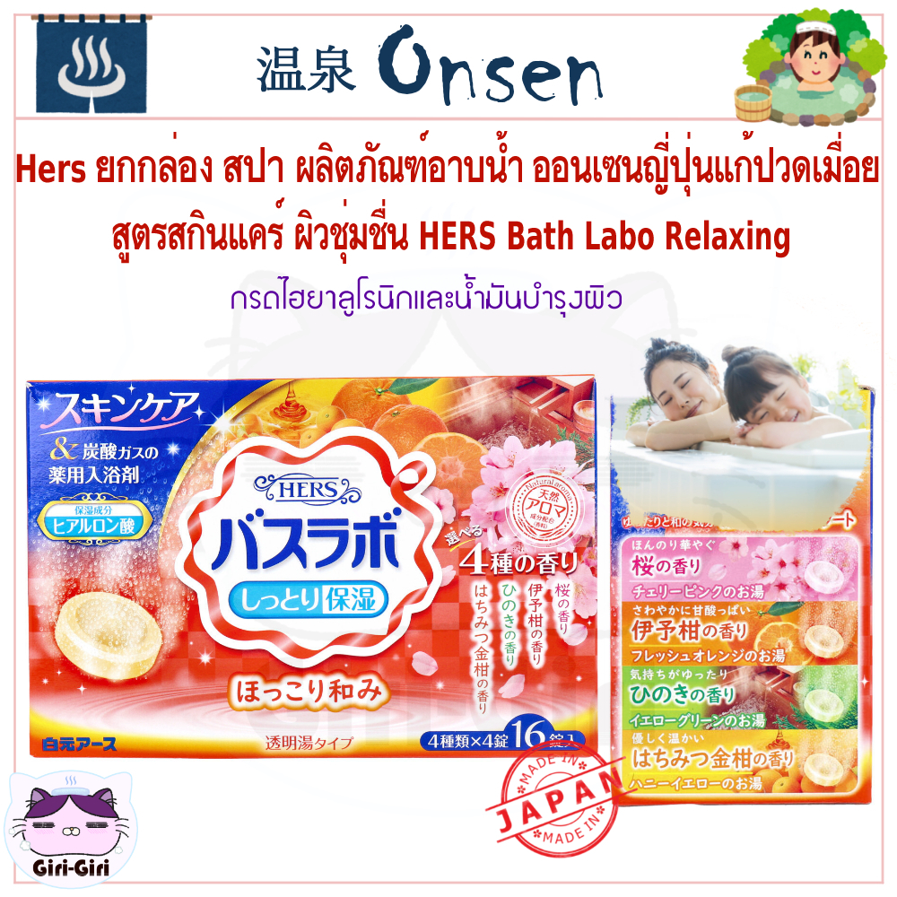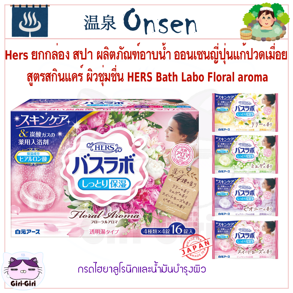 Hers ยกกล่อง16ซ. ออนเซ็น สปา น้ำแร่ญี่ปุ่น สูตรสกินแคร์ ผิวชุ่มชื่น อาบน้ำ HERS Bath Labo เม็ดฟู่45g