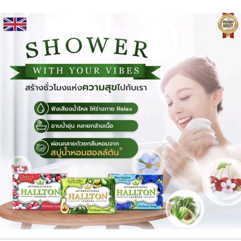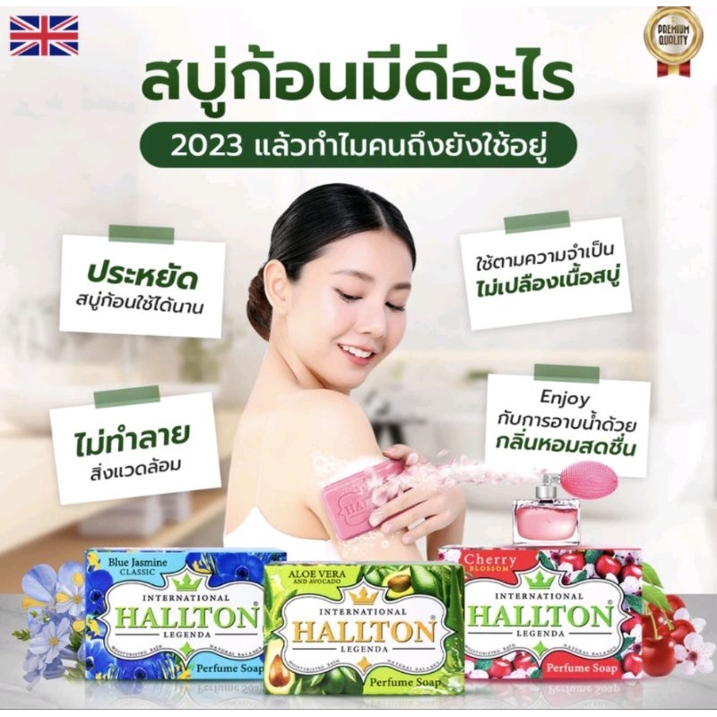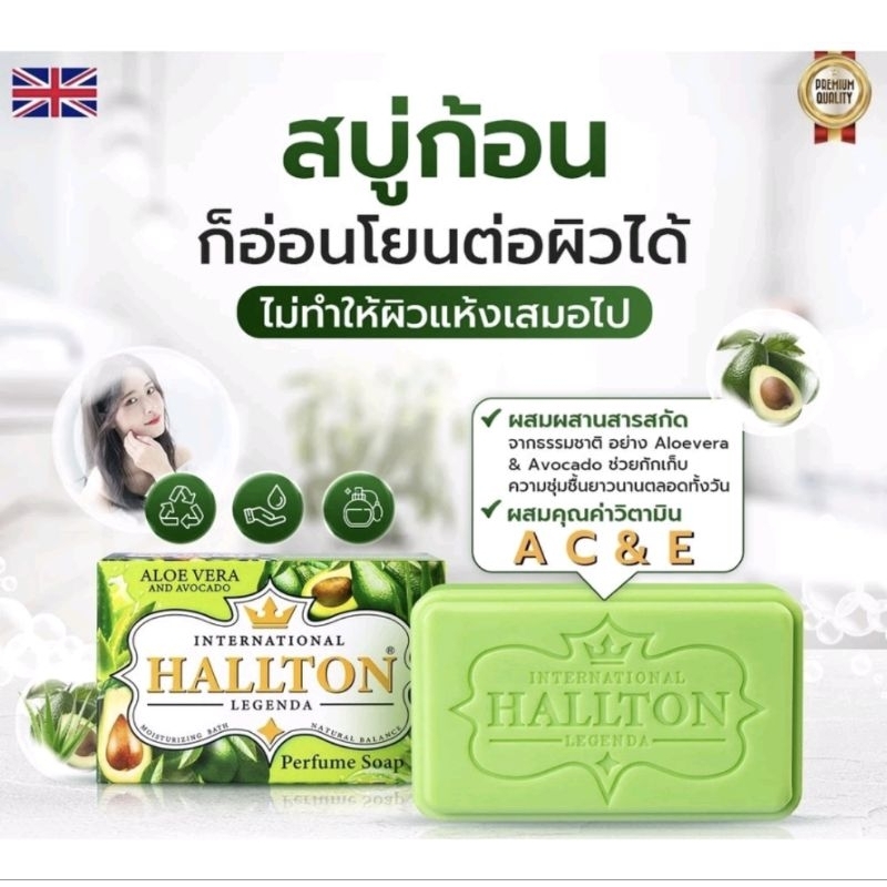 HALLTON สบู่น้ำหอม กลิ่นหอมติดผิวกาย มอยส์เจอร์ไรเซอร์ และวิตามิน A, C ,E 130 กรัม