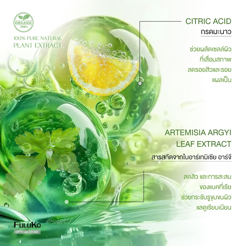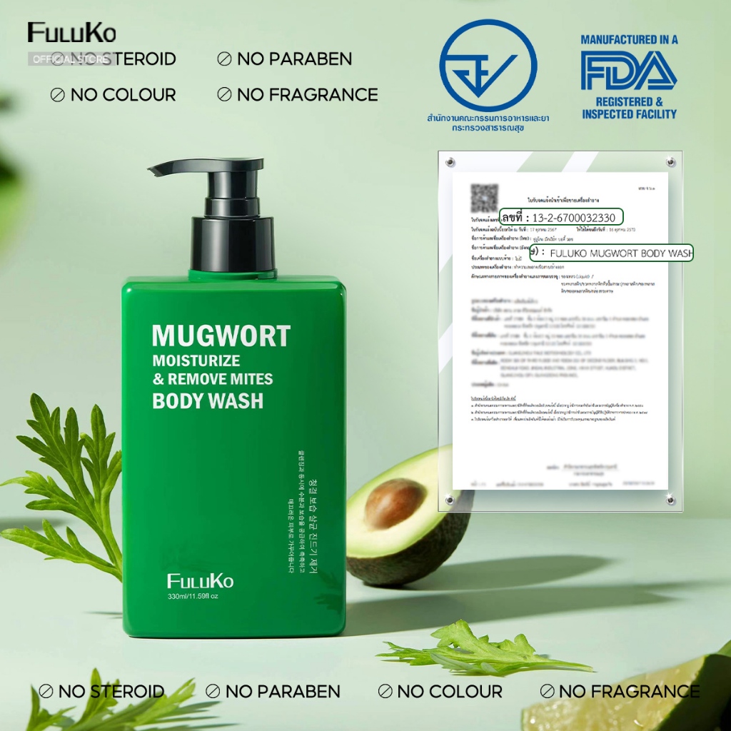 FULUKO เจลอาบน้ำโกฐจุฬาลัมพา ลดการเกิดสิว ซ่อมแซมผิวที่ถูกทำลาย ARTEMISIA ARGYI Shower Gel 330ml
