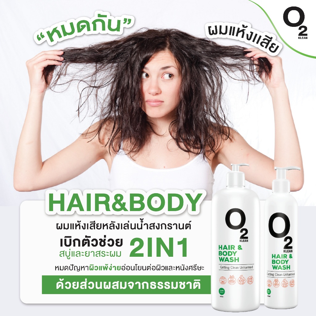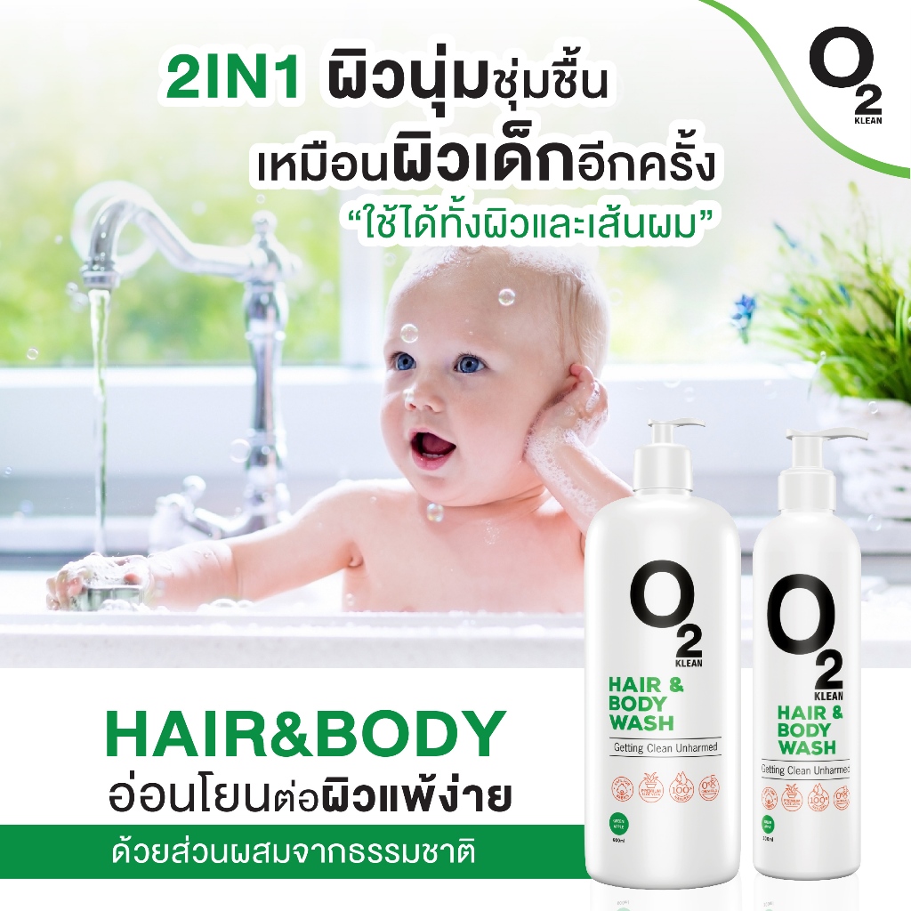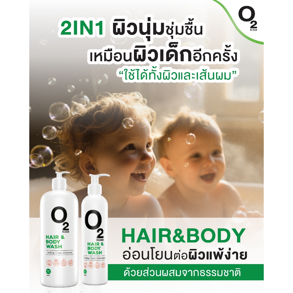 O2 Klean Hair & Body Wash สบู่เหลวและแชมพูในขวดเดียว กลิ่น Pear&freesia ขนาด 600 ml
