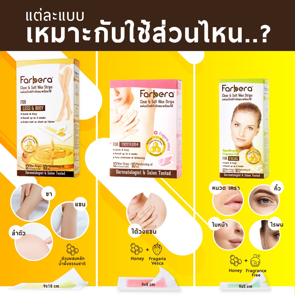 Farbera Clear & Soft Wax Strips For legs & body 12 แผ่น (แผ่นแว๊กขน แผ่นแว๊กซ์ขนขา กำจัดขนขา แว็กกำจัดขน แว๊กขน)