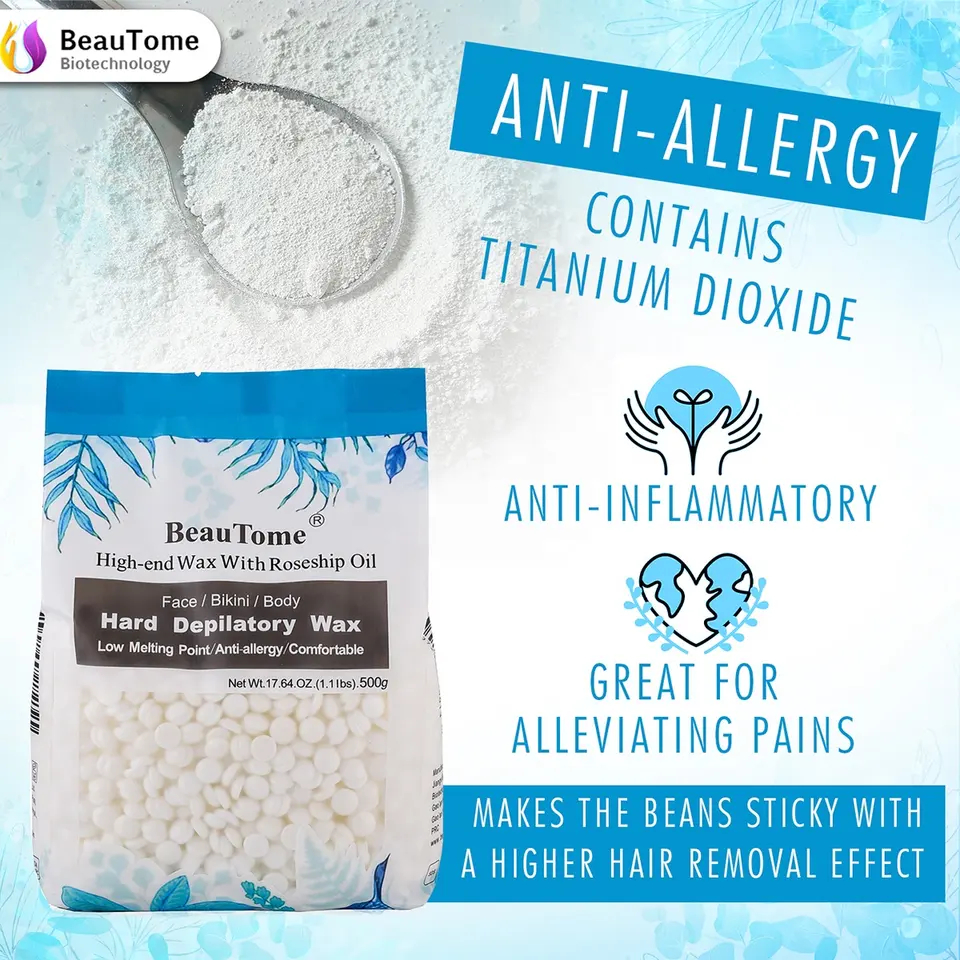 A1เม็ดแว็กซ์กำจัดขน Hard wax beans Natural 100% Salon Use ไร้สี ไร้กลิ่น ลดการแพ้ กำจัดขน 98% ขนาด 500 g.