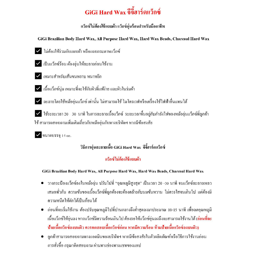 GiGi Brazilian Body Hard Wax บราซิลเลื่ยน ฮาร์ดแว็กซ์/บิกินี่แว็กซ์(เเว็กซ์ร้อน)นำเข้าจากอเมริกา0899