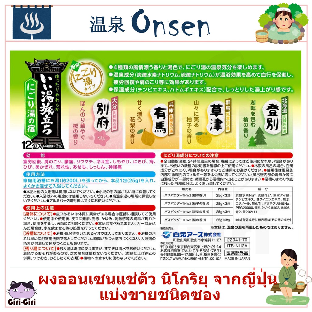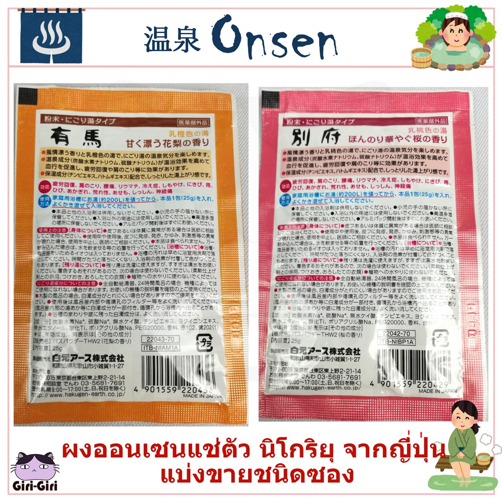 ผงออนเซน ผงอาบน้ำแช่ตัว แบ่งขายชนิดซอง เกลือออนเซน น้ำแร่ญี่ปุ่น ออนเซ็น ผงแช่ออนเซน ONSEN Nigori โรงแรมน้ำพุร้อนนิโกริ