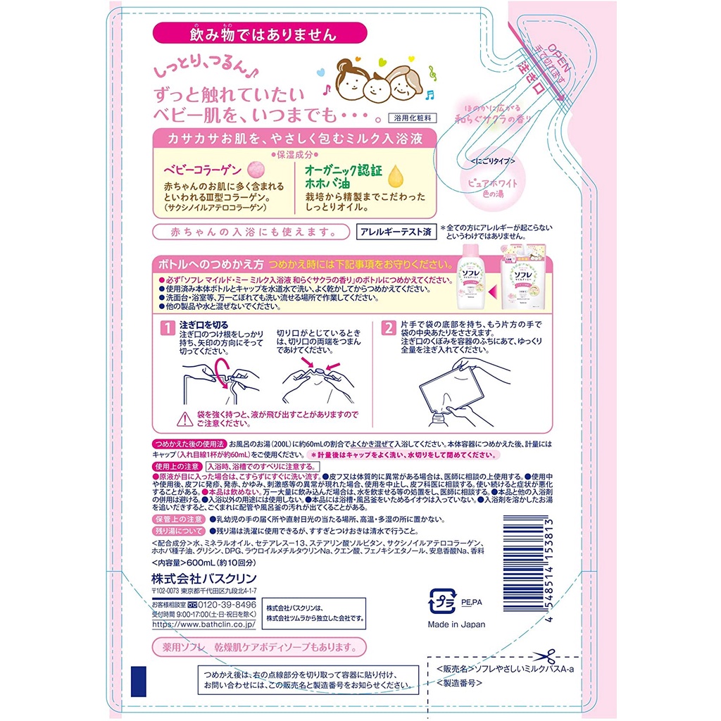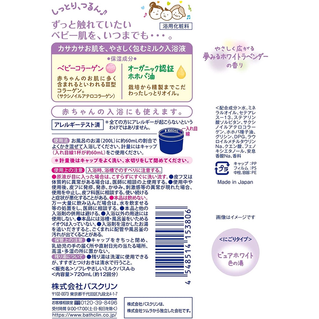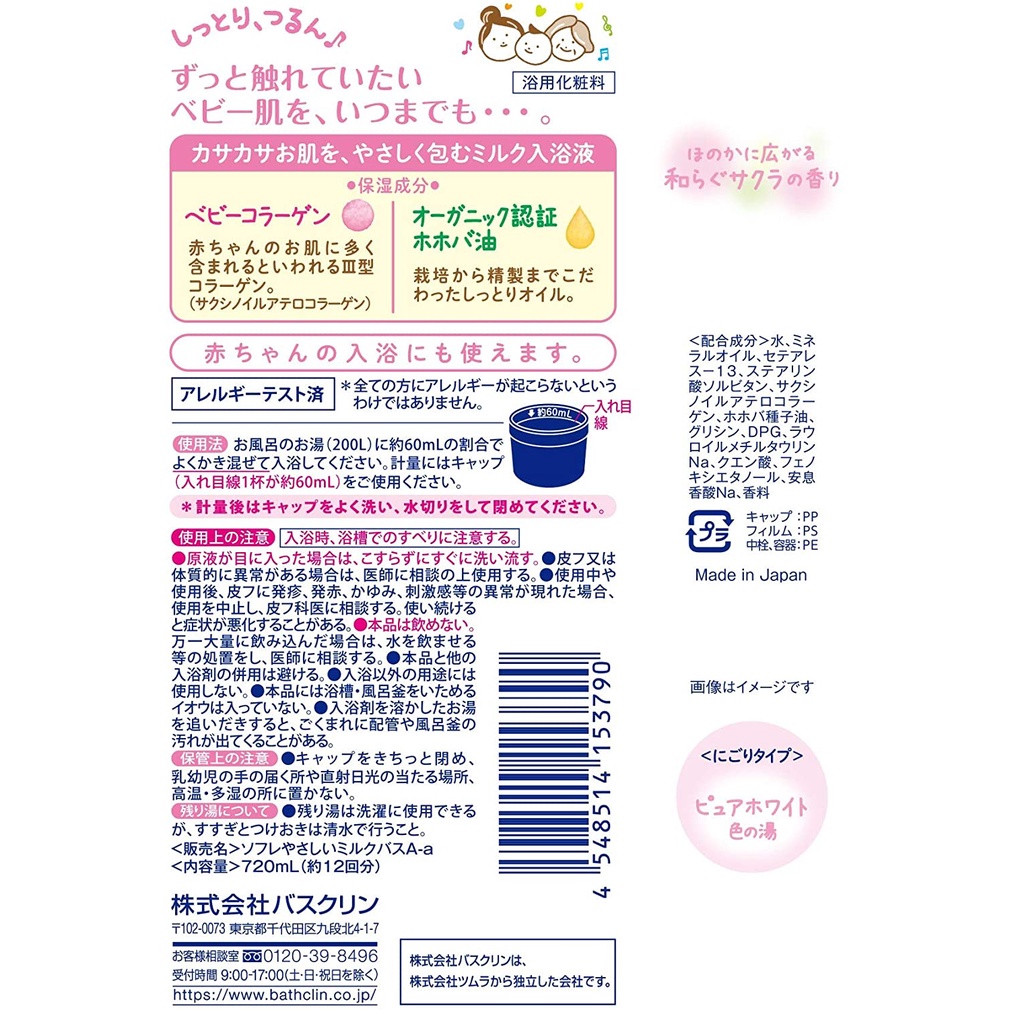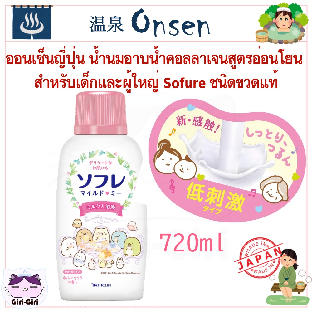 บาธมิลค์ ออนเซ็นญี่ปุ่น น้ำนมอาบน้ำ น้ำนมอาบน้ำคอลลาเจนสูตรอ่อนโยน สำหรับเด็กและผู้ใหญ่ ขวด 720 ml