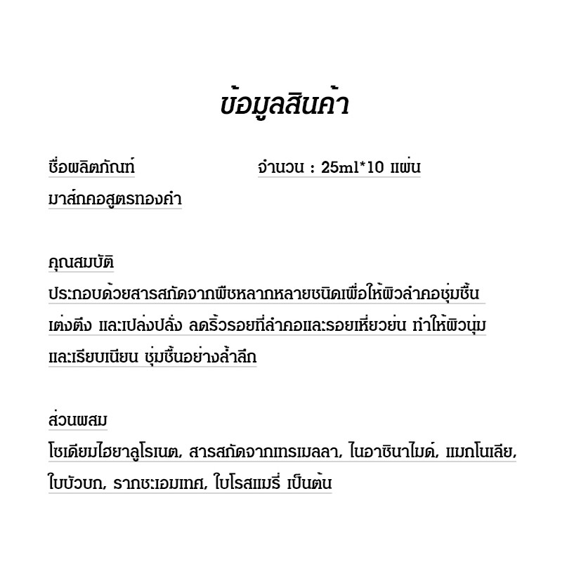 หน้ากากคอเพื่อป้องกันการเกิดริ้วรอยและเส้นย่นบนคอ 10 ชิ้น