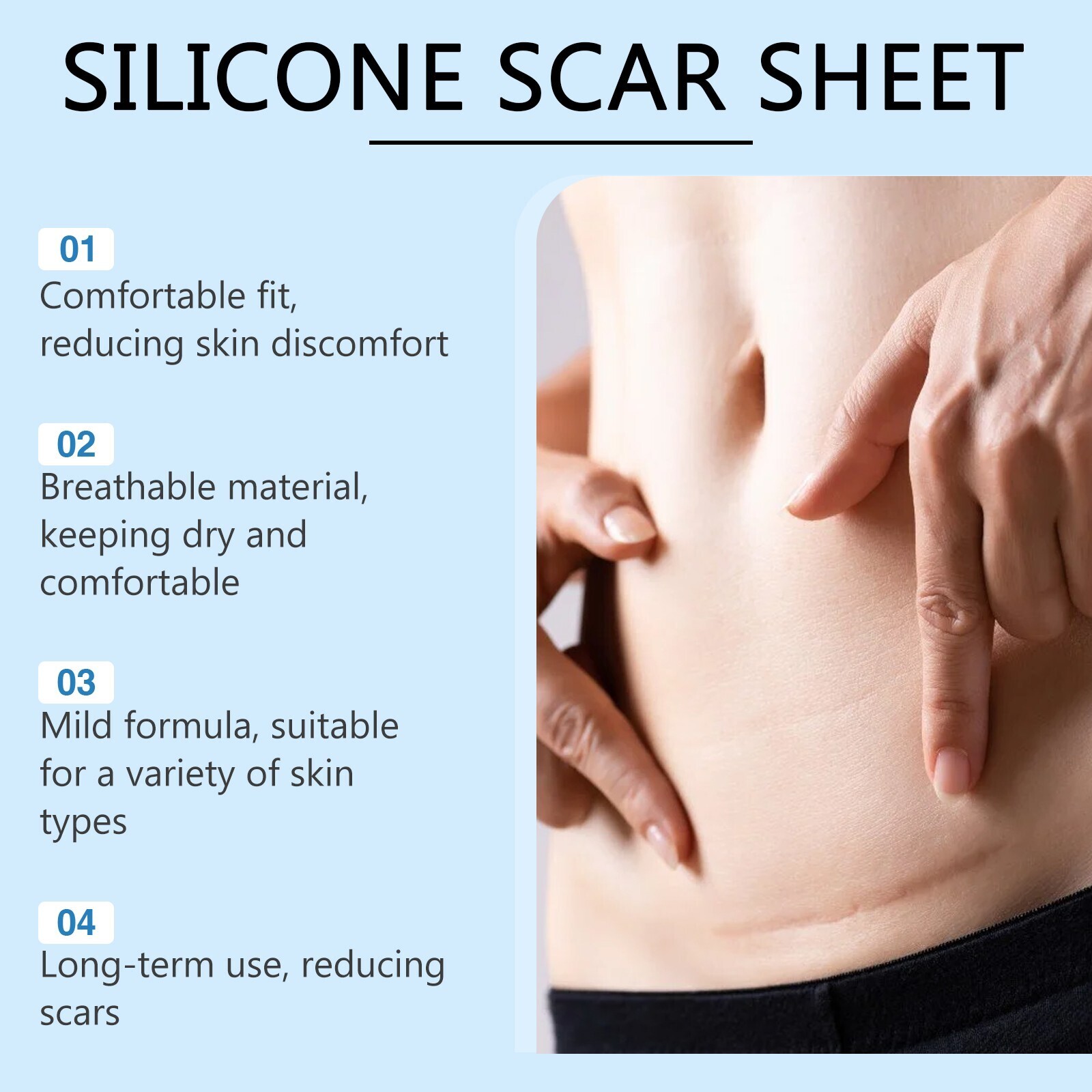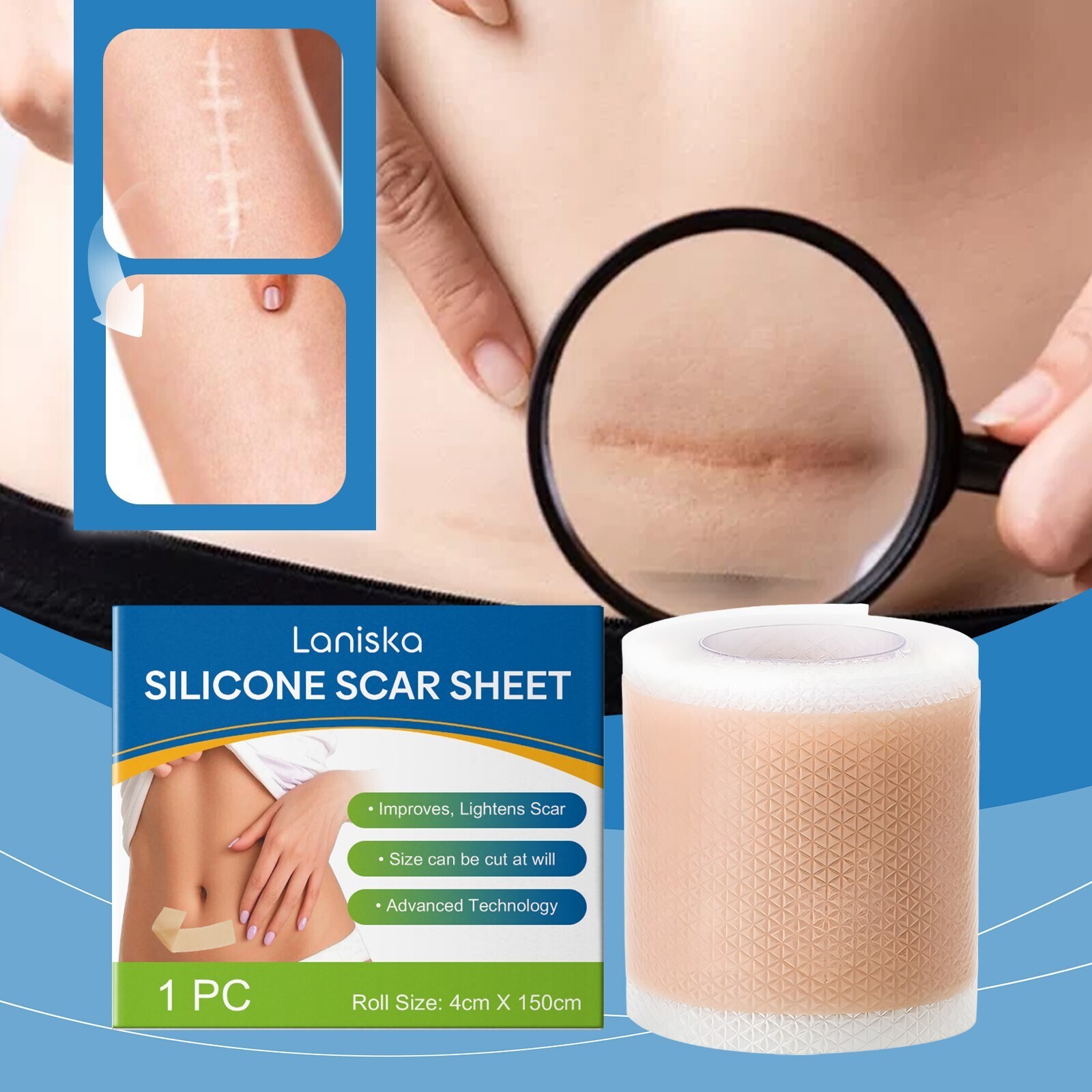 เทปซิลิโคนรักษาแผลเป็น | พลาสเตอร์ซิลิโคนระบายอากาศสำหรับผิวเนียนนุ่ม | เทปติดเนียนนุ่มแบบไม่เห็นด้วยตัวเองสำหรับแผลเป็นจากสิว – ขนาด 4*150 ซม.