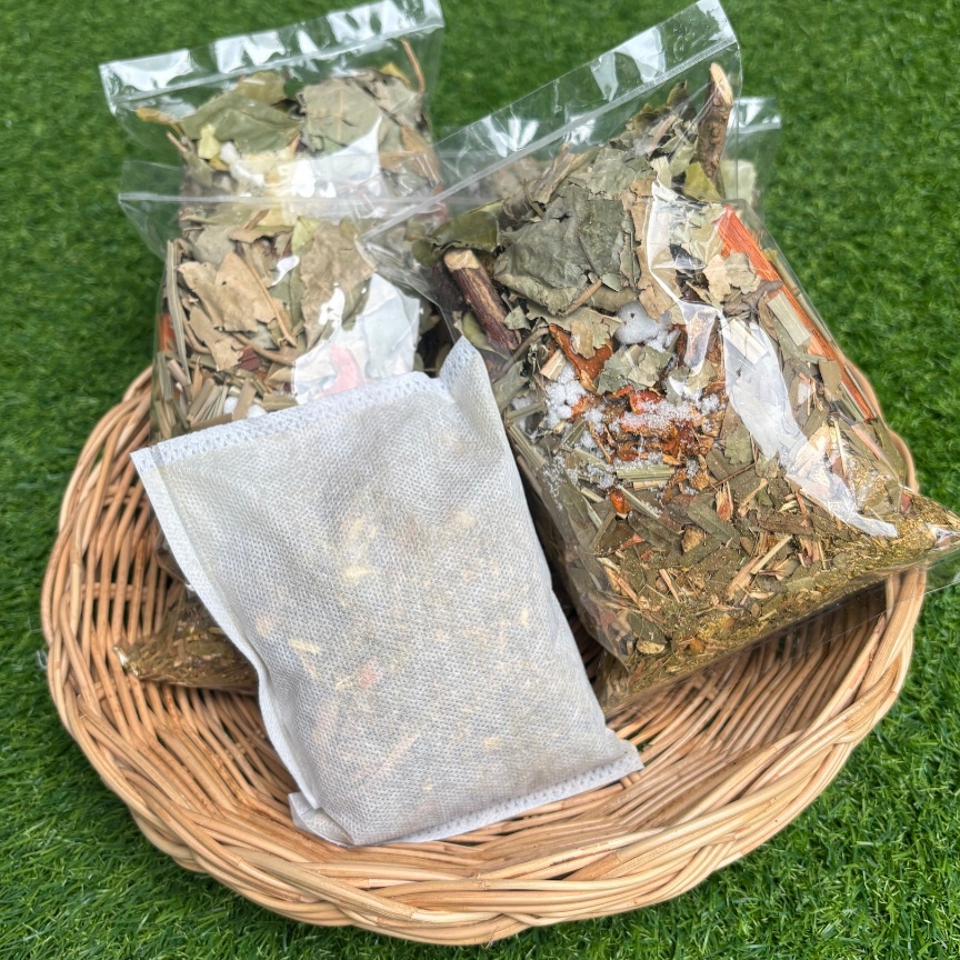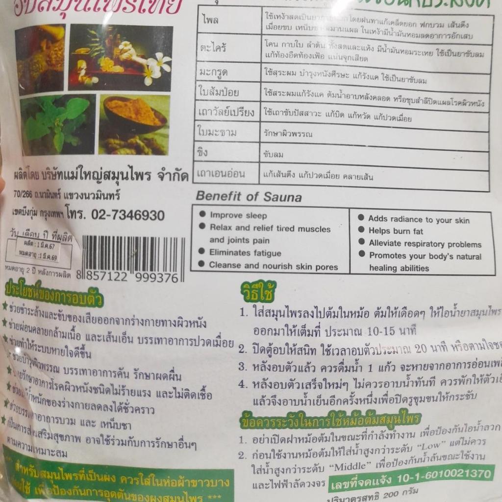 แม่ใหญ่ สมุนไพรอบตัว ชนิดบด สูตรเข้มข้น พร้อมถุงผ้า อบสมุนไพร อบกระโจม ปริมาณ 200 กรัม