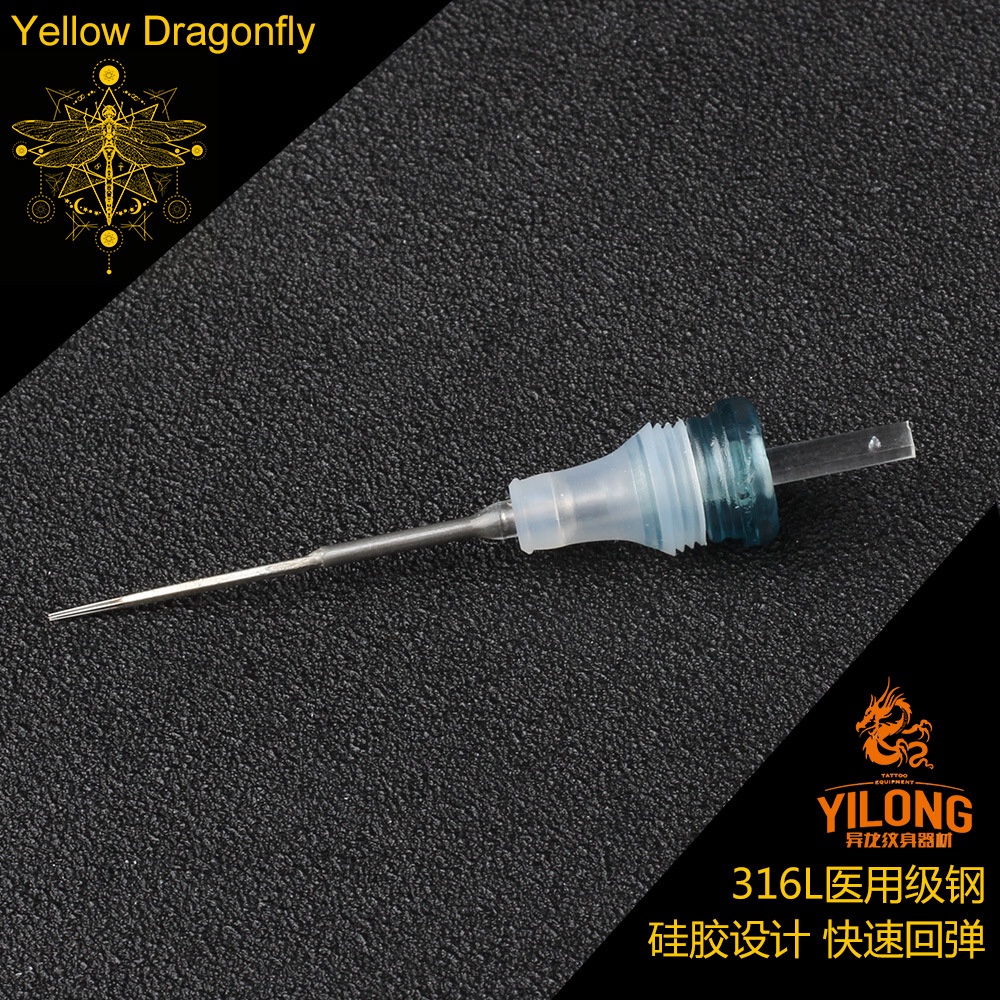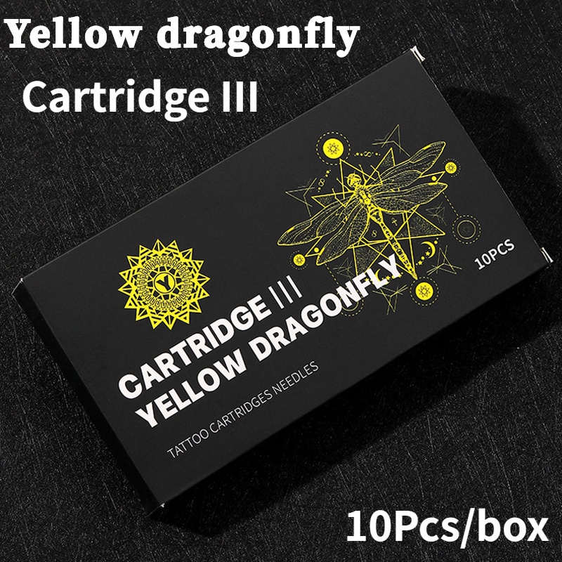 (จัดส่งภายใน 24 ชั่วโมง) เครื่องสักซิลิโคน รูปแมลงปอ สีเหลือง แบบใช้แล้วทิ้ง 10 ชิ้น ต่อกล่อง