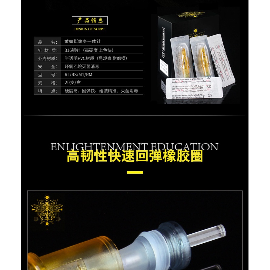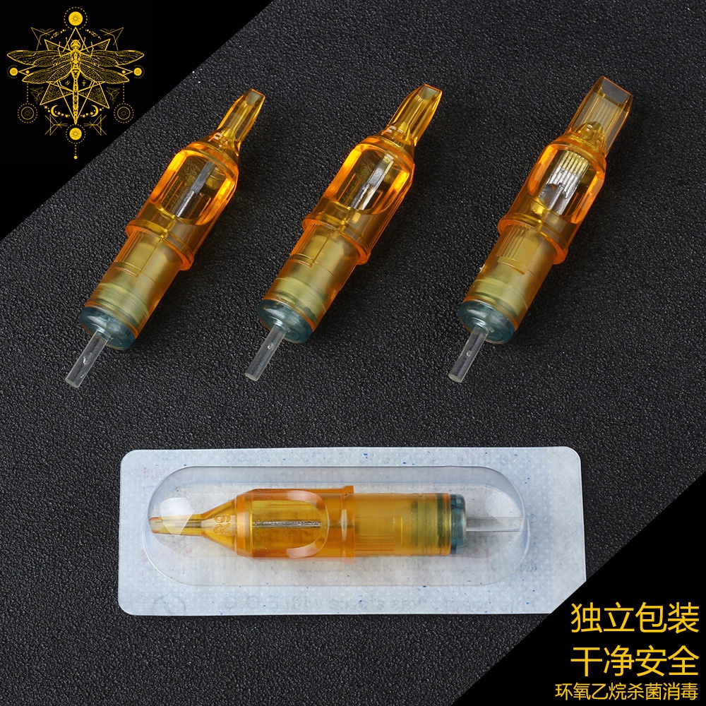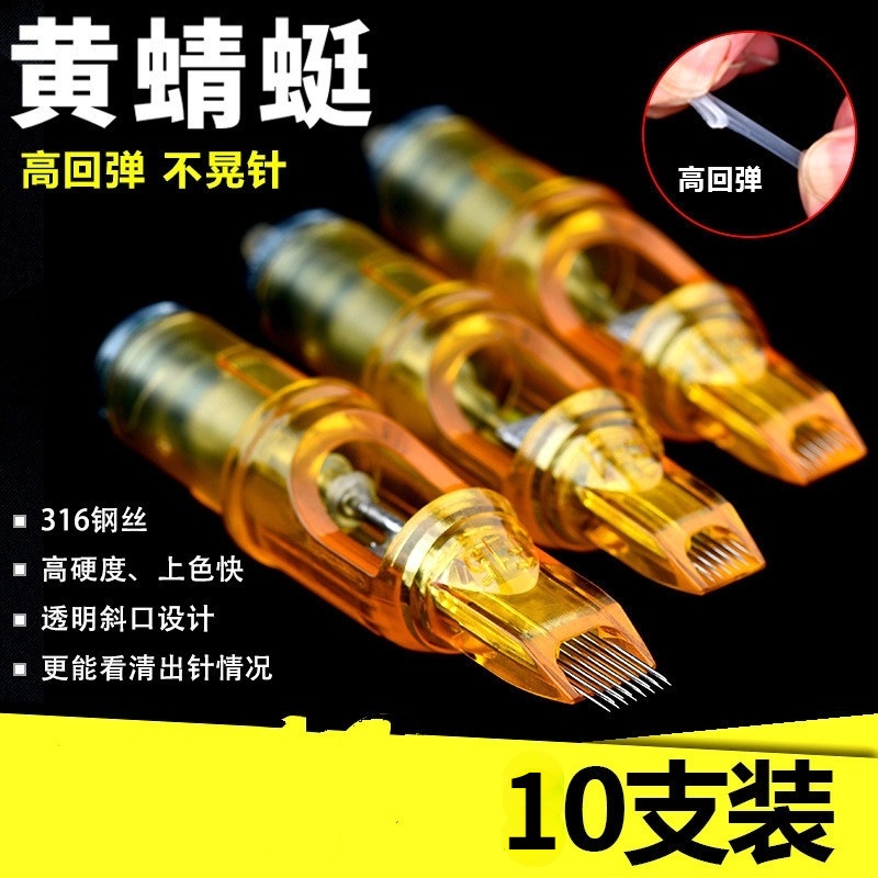 ((แพ็กเกจสิบชิ้น) อุปกรณ์สักคิ้ว เข็มสักคิ้ว แบบใช้แล้วทิ้ง สไตล์ใหม่ สีเหลือง แมลงปอ (รุ่นแรก) 20 ชิ้น