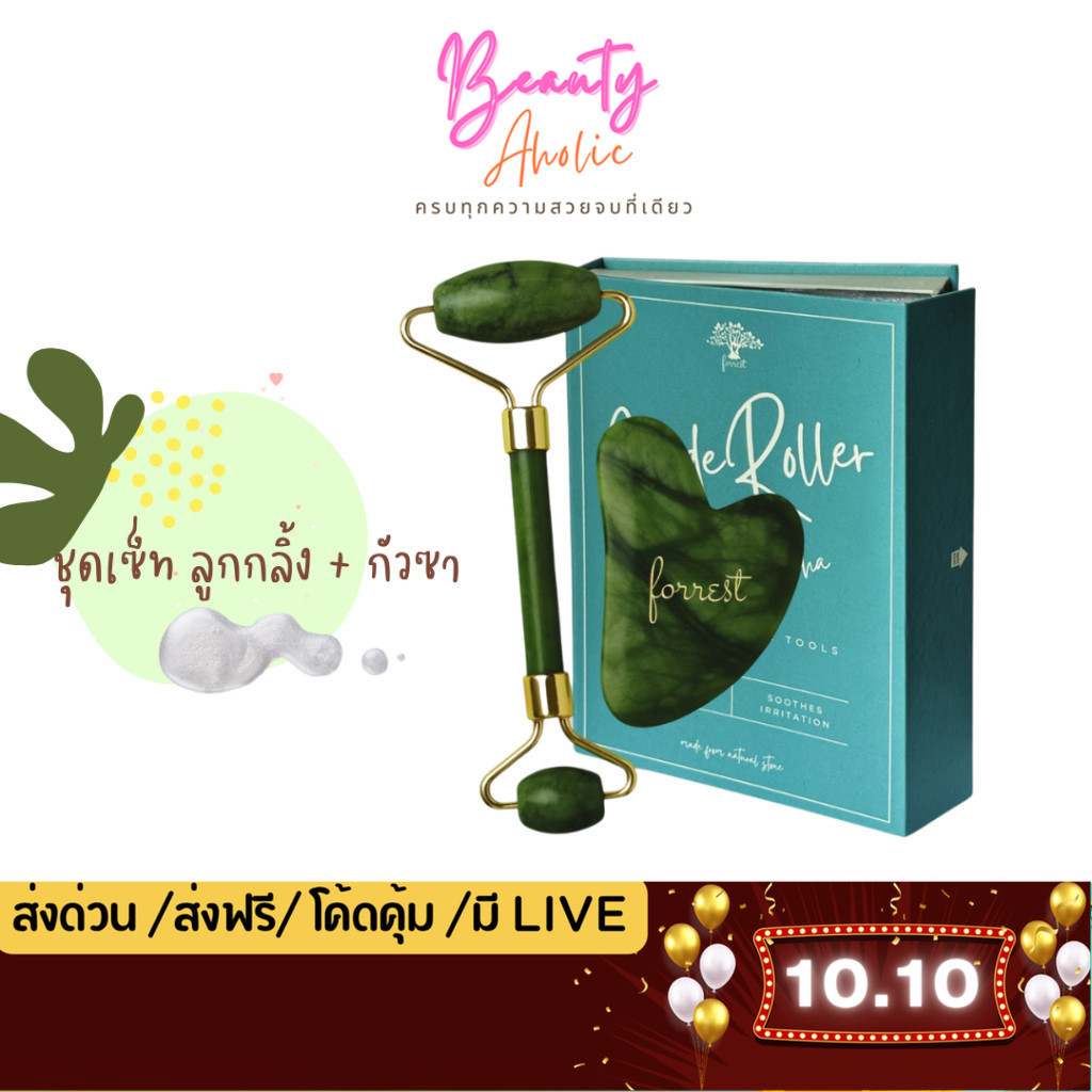 💟ของแท้ | ส่งเร็ว💟 ลูกกลิ้งหยก + กัวซา แบรนด์ฺ Forrest Jade roller and Gua Sha Set