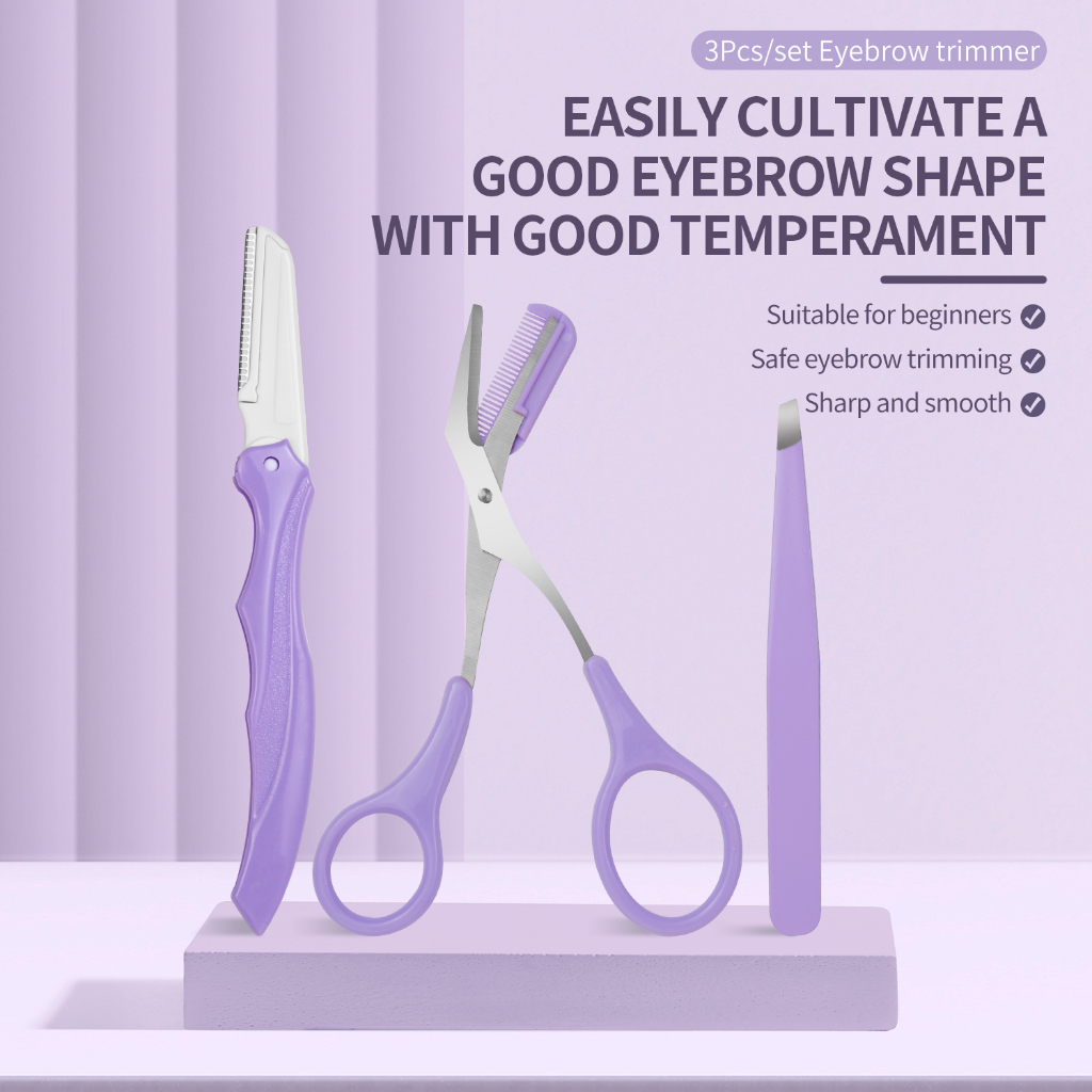 กรรไกรตัดแต่งขนคิ้ว ที่กันจอนคิ้วแบบเมนสกัสไม่ทำร้ายผิวและเหมาะสำหรับผู้เริ่มต้น