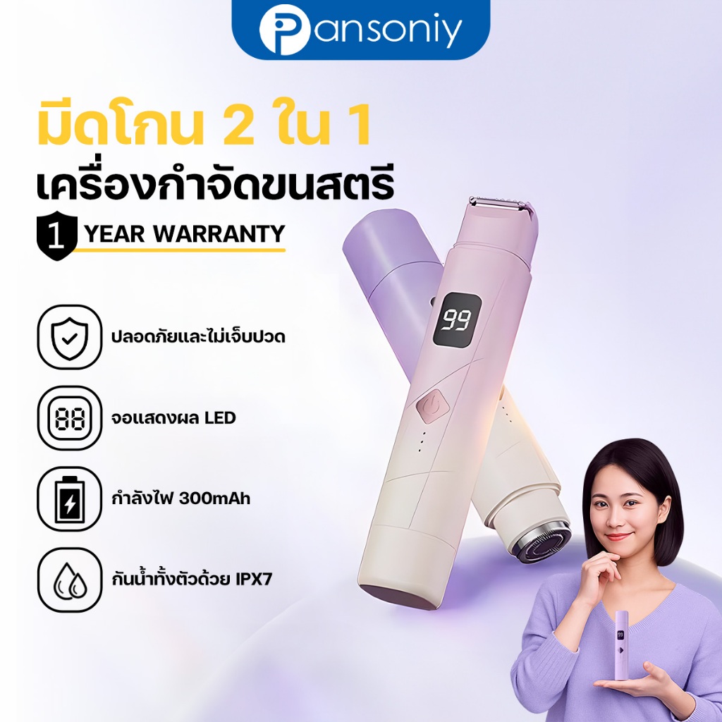 Pansoniy เครื่องกำจัดขน 2IN1 เครื่องกำจัดขนสตรี จอแสดงผล LED กันน้ำทั้งตัว ไฟฟ้า กำจัดขนง่าย เช่น รักแร้ บิกินี่ ขาหนีบ อื่นๆ ปลอดภัยและไม่เจ็บปวด
