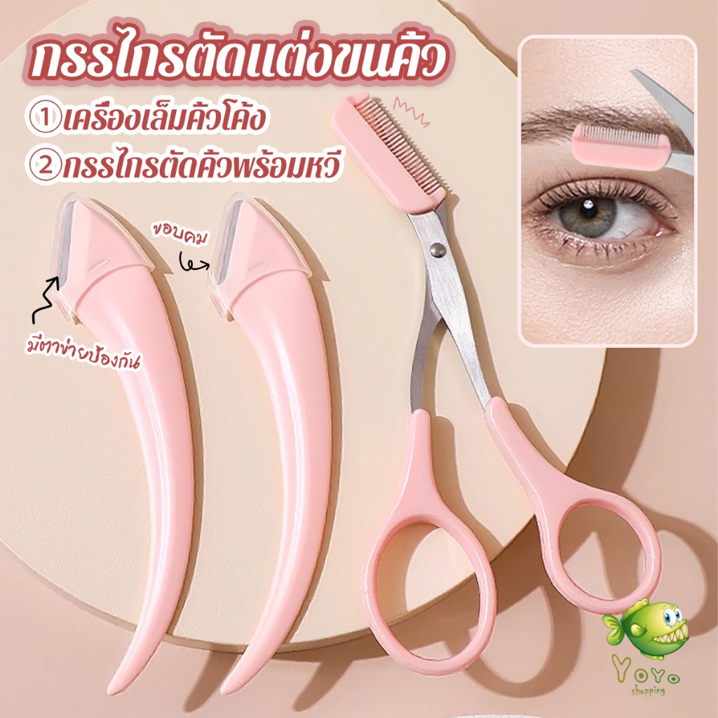YOYO กรรไกรตัดแต่งขนคิ้ว เครื่องมือจัดแต่งหน้า เหมาะสำหรับมือใหม่ eyebrow razor