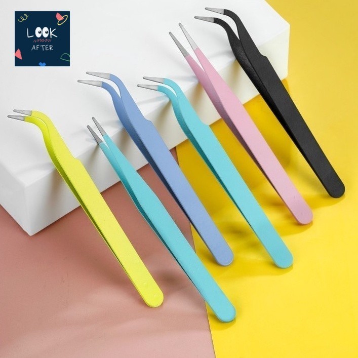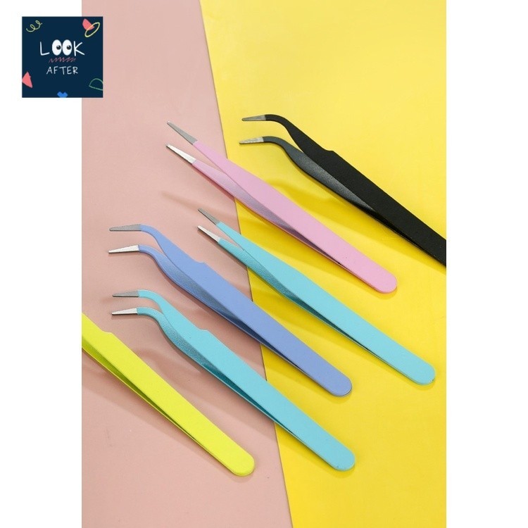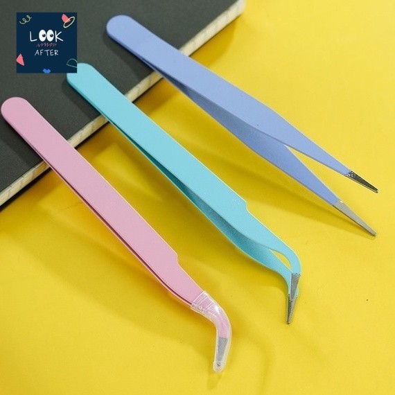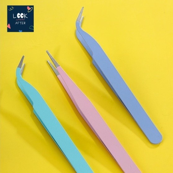 Look After ที่คีบ แหนบ แหนบสีพาลเทล คีบสติ๊กเกอร์ คีบเส้นผม สีฟ้า สีน้ำเงิน สีชมพู แบบหัวงอ