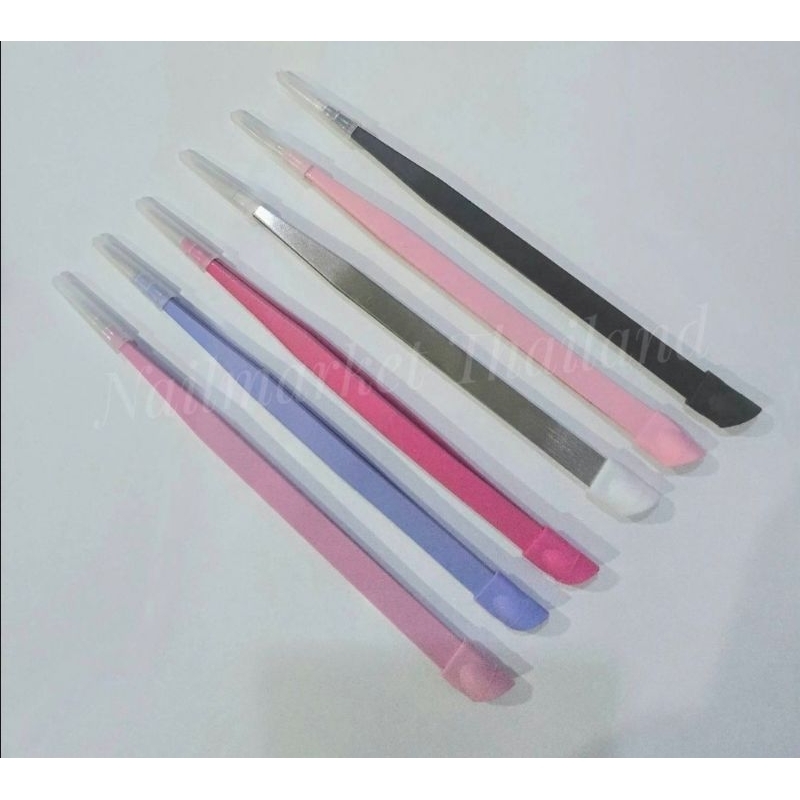 Restock🔁 แหนบหนีบปลายแหลม หยิบอะไหล่ติดเล็บ มี 6 สี Nail Tweezer พร้อมที่ดันหนัง พร้อมส่ง