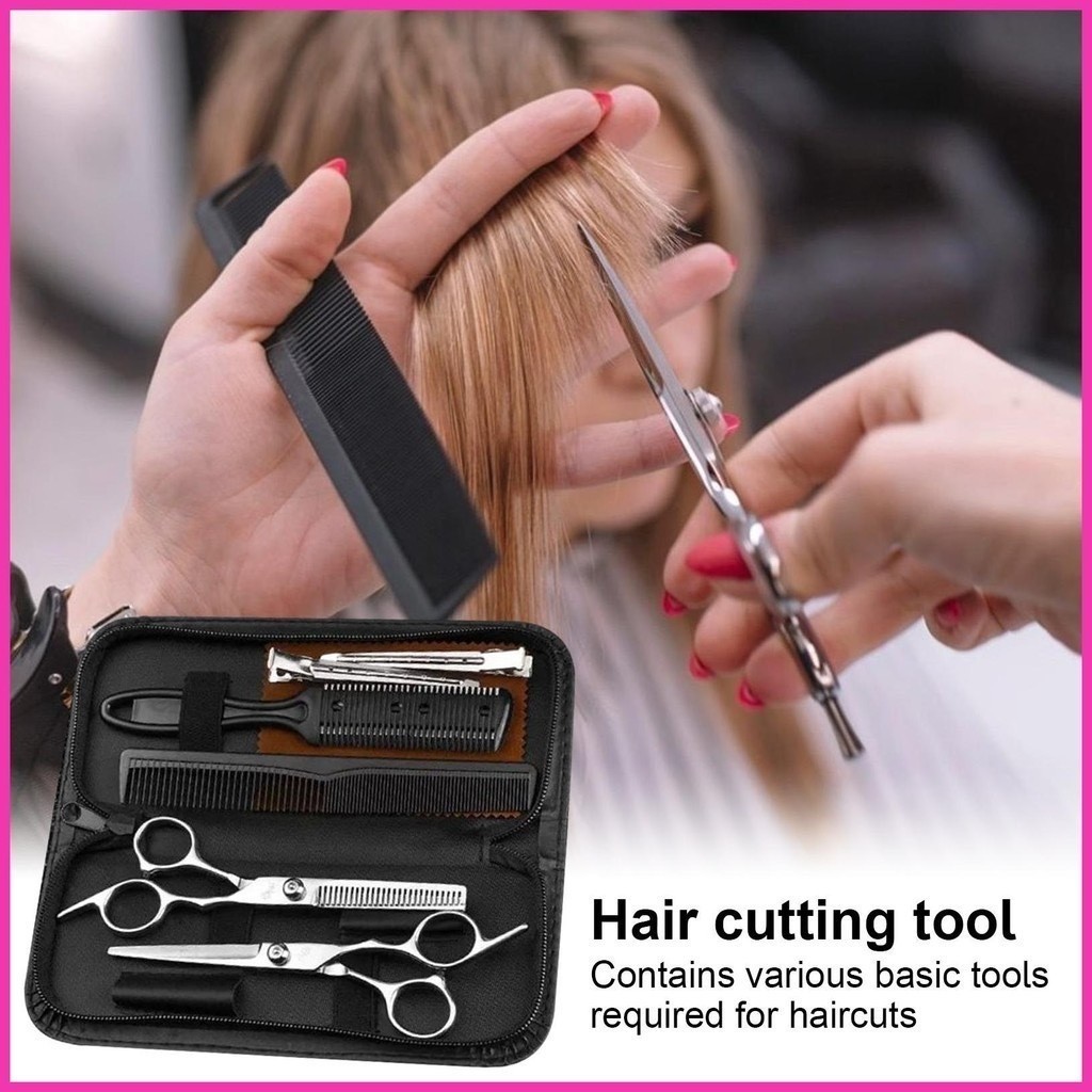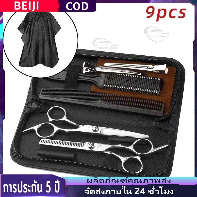 🔥จัดส่งที่รวดเร็ว🔥กรรไกรซอยผม กรรไกรตัดผม 9 PCS/Set กรรไกรตัดผมอุปกรณ์ทำผม หญิง ชุดตัดผม