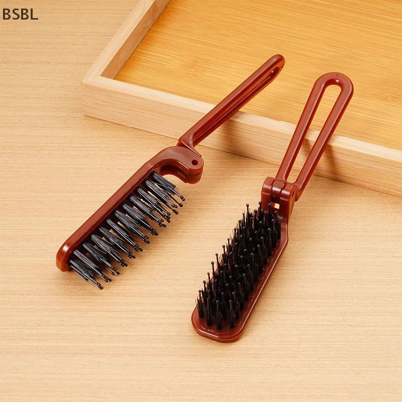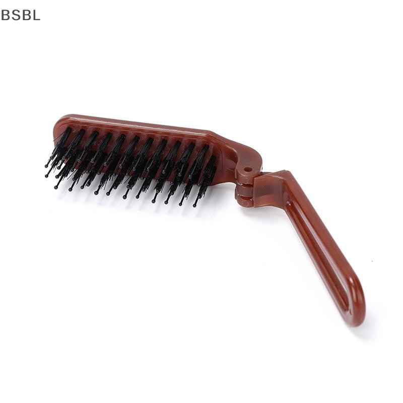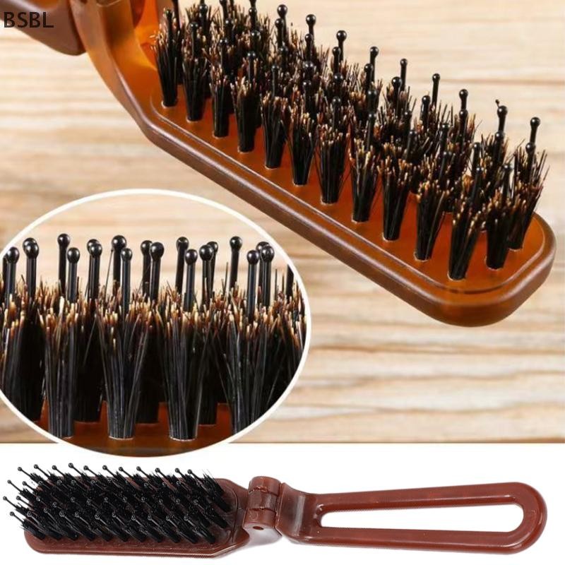 BSBL หวีผมพับได้แบบพกพาหมูป่าขนแปรงหัวแปรงนวดนวดหนังศีรษะหวีเดินทางสําหรับผมหยิกตรง BL