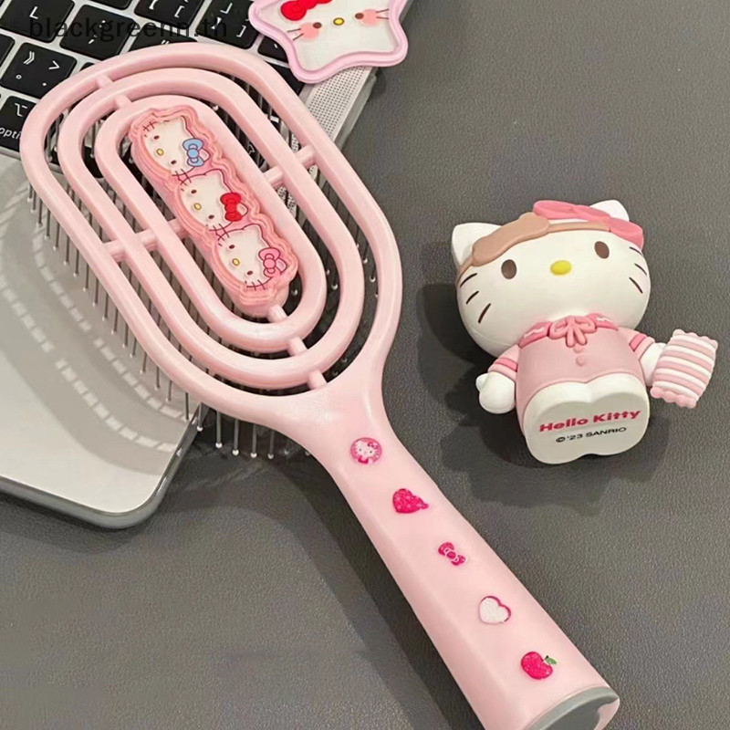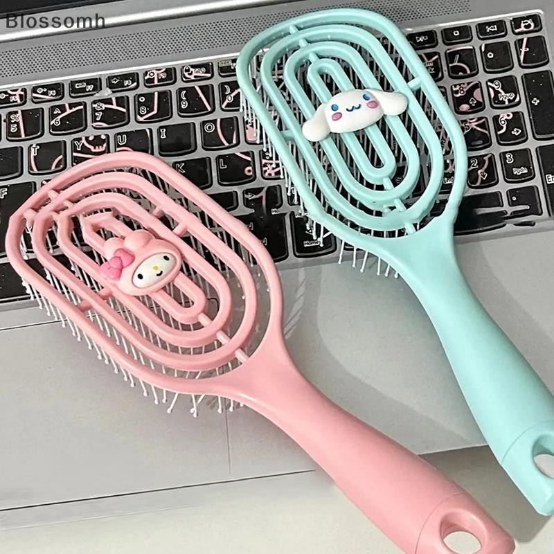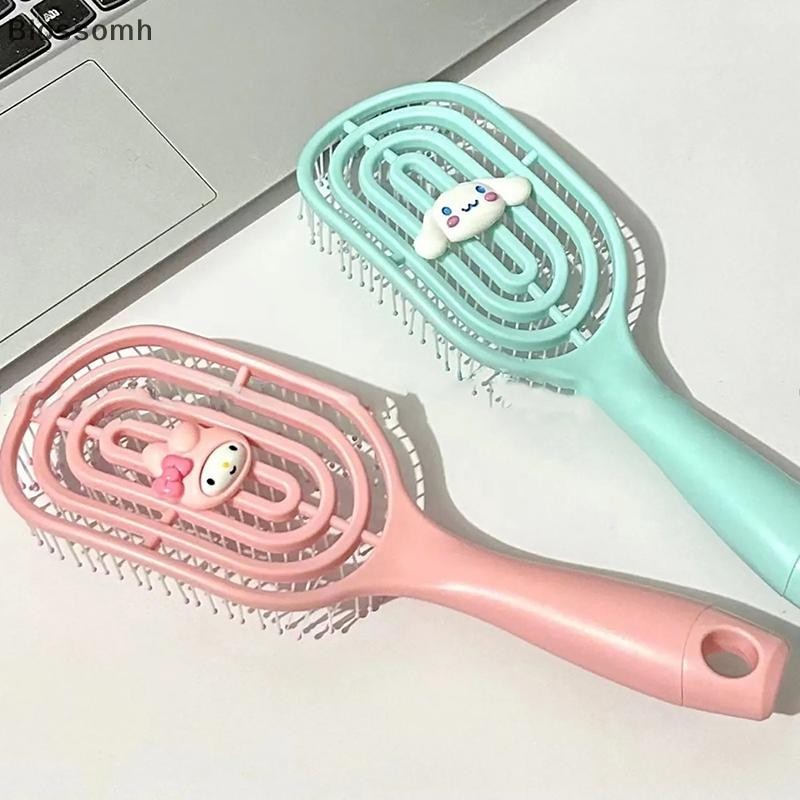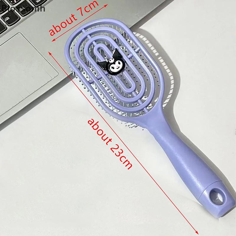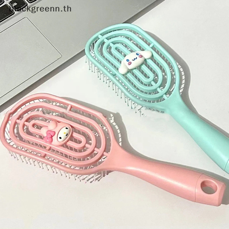 Bgree Kawaii Hello Kitty Kuromi Cinnamoroll Comb หวีนวดกลวงหวีถุงลมนิรภัยด้ามยาวสําหรับของขวัญวันเกิดของเด็กผู้หญิง