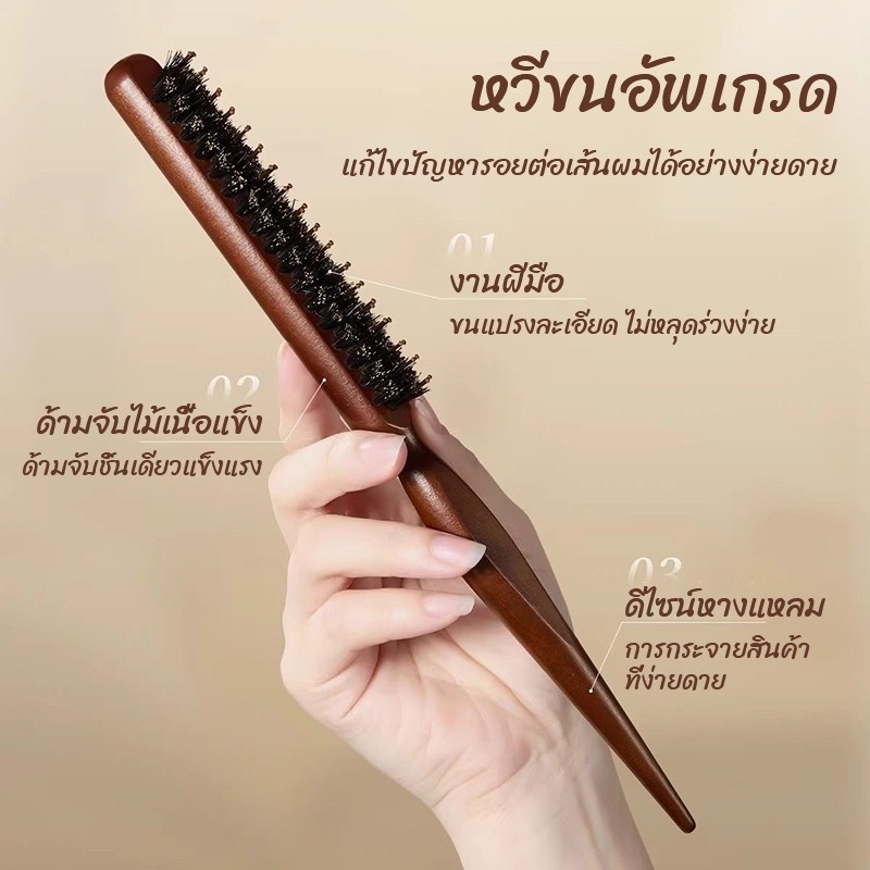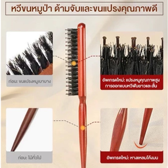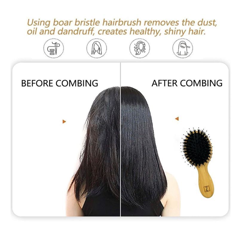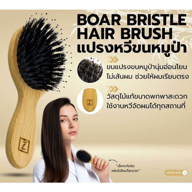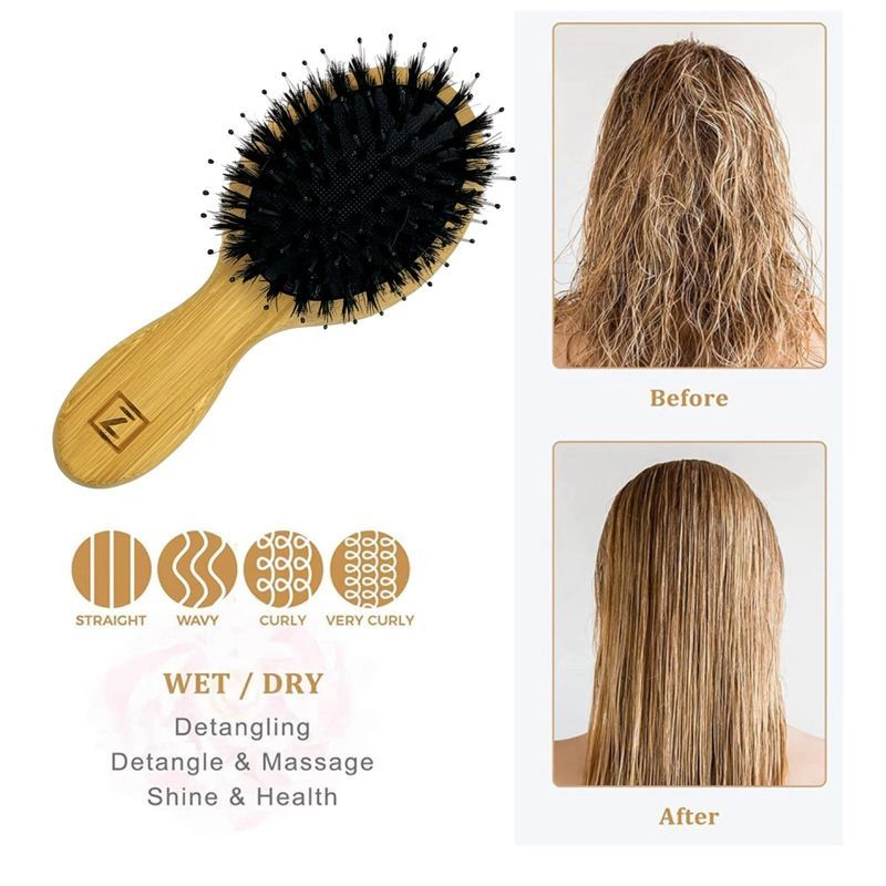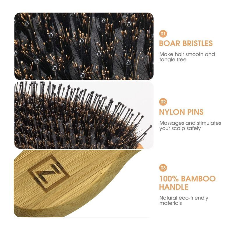 BOFEI แปรงผม/แปรงผมขนหมูป่าธรรมชาติ/แปรงผม/หวี/เหมาะสำหรับการมัดผมและลดการพันกัน
