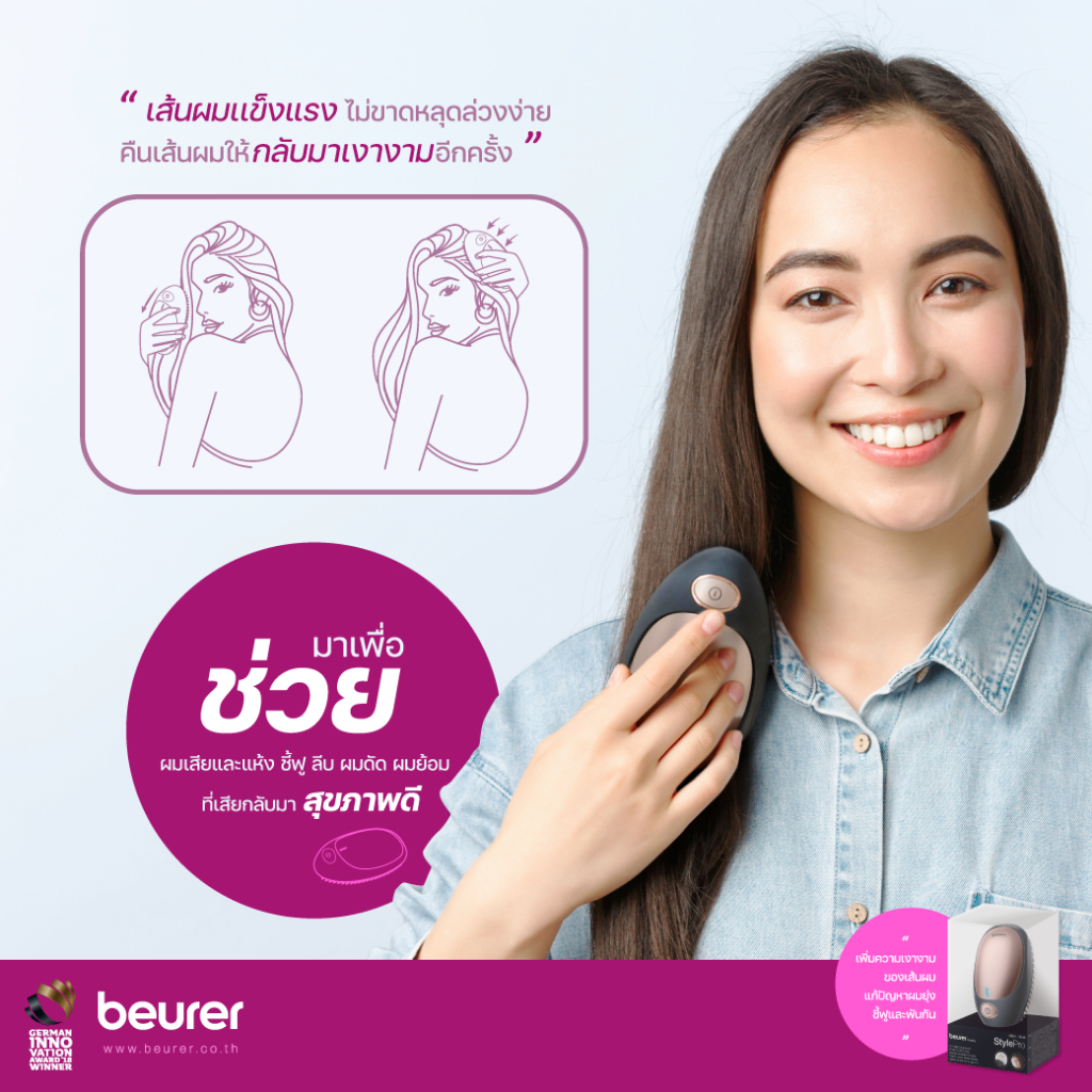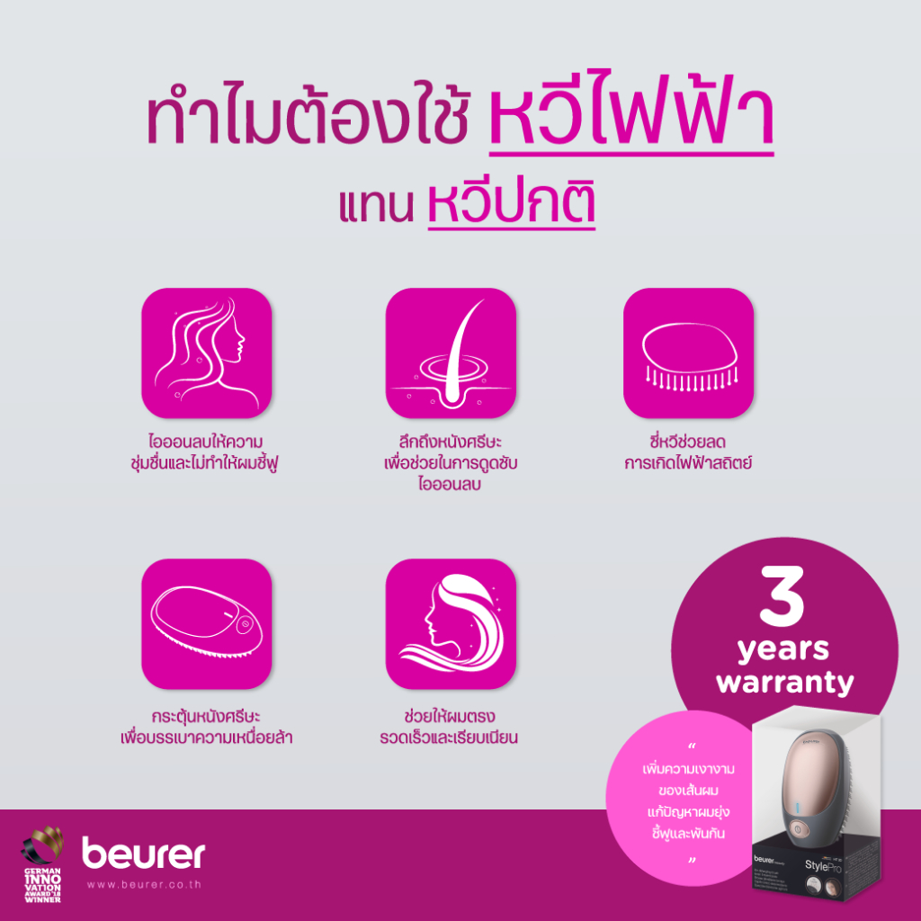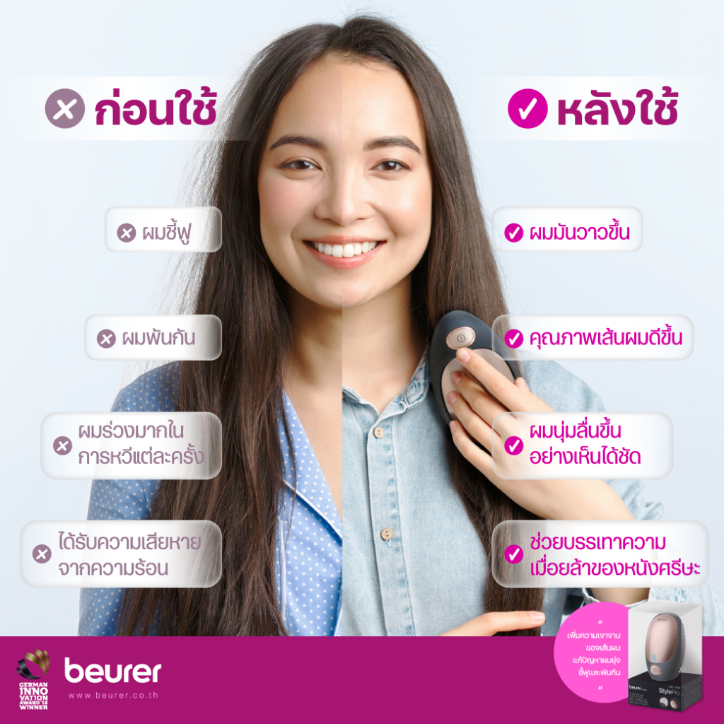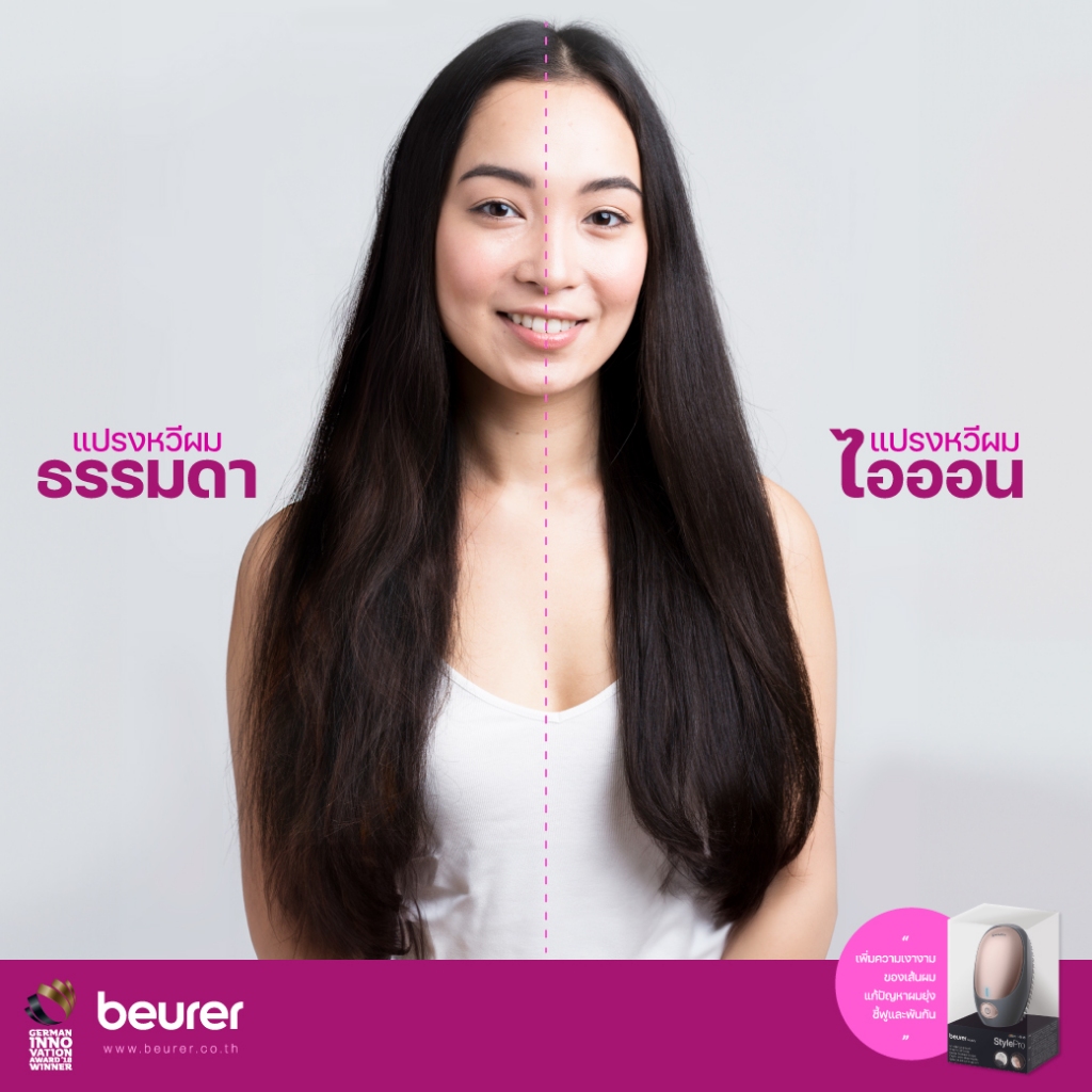 Beurer แปรงหวีผมไอออนิกไร้สาย แบบพกพา หวีผมตรงเงางาม ถนอมเส้นผมไม่ชี้ฟู รุ่น HT 10 [รับประกัน 3 ปี]