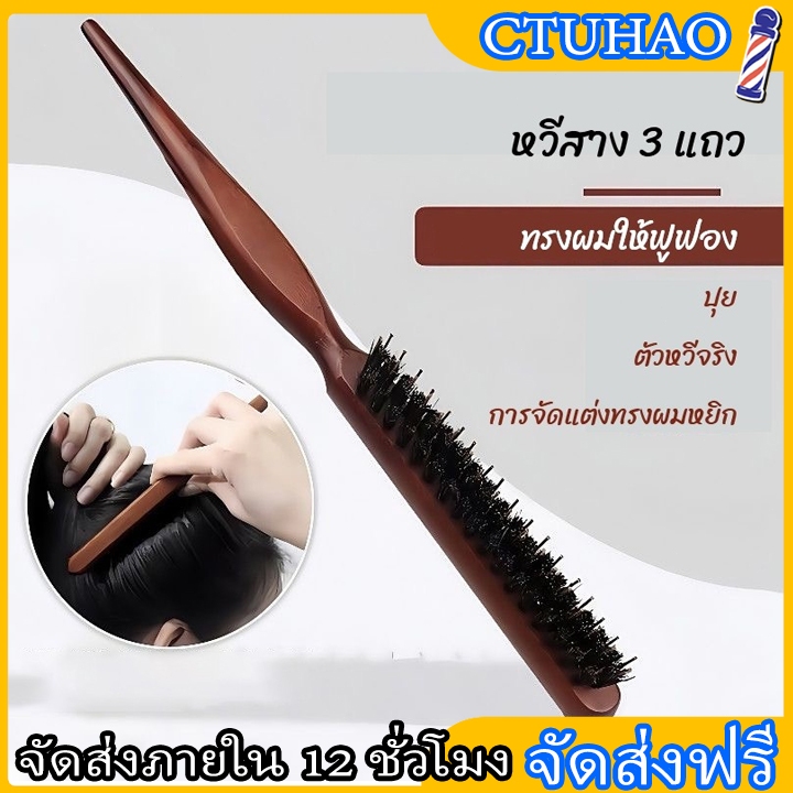 Breeze แปรงกลมเล็ก, แปรงผม Anti Static Teasing Brush, จัดแต่งทรงผมเครื่องมือไม้ Handle Boar Bristle Hair Brush บ้าน